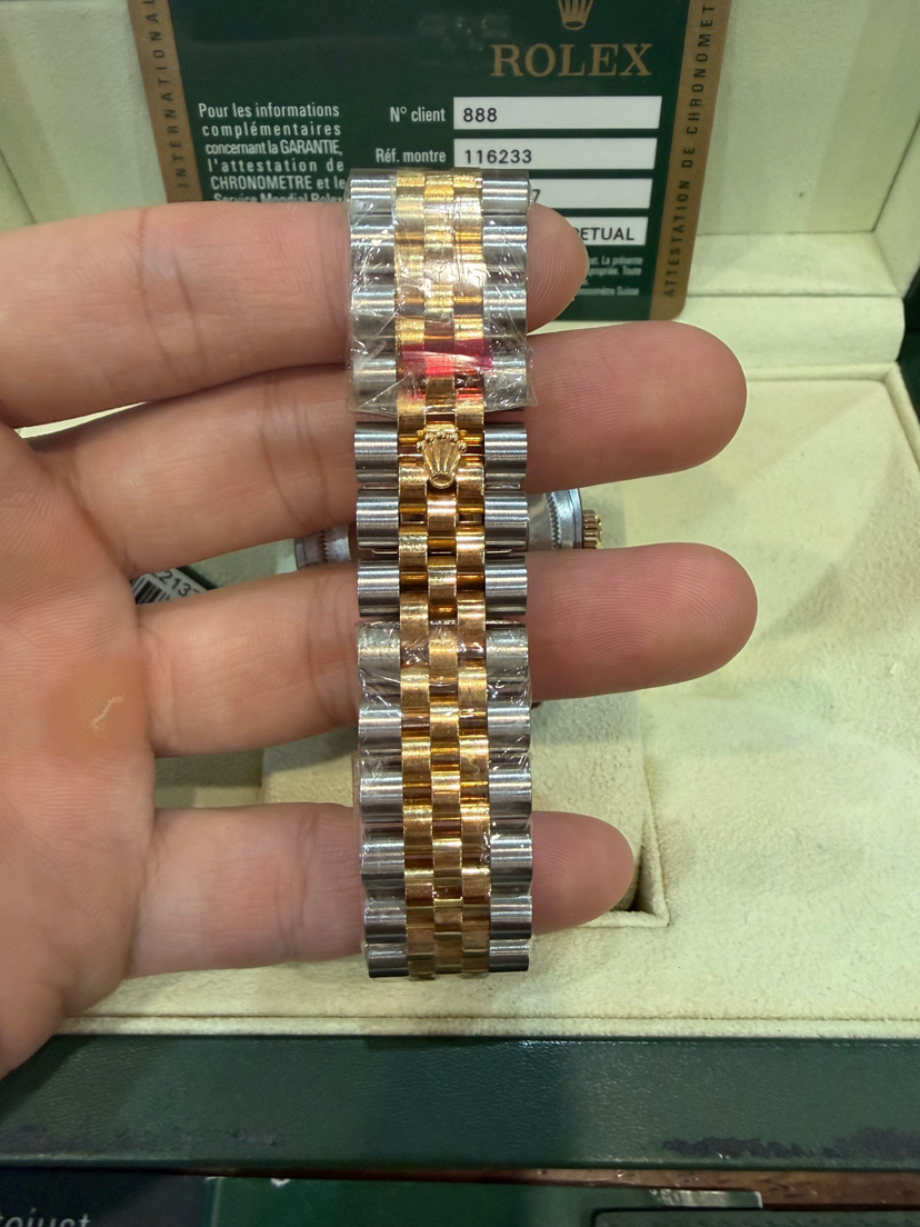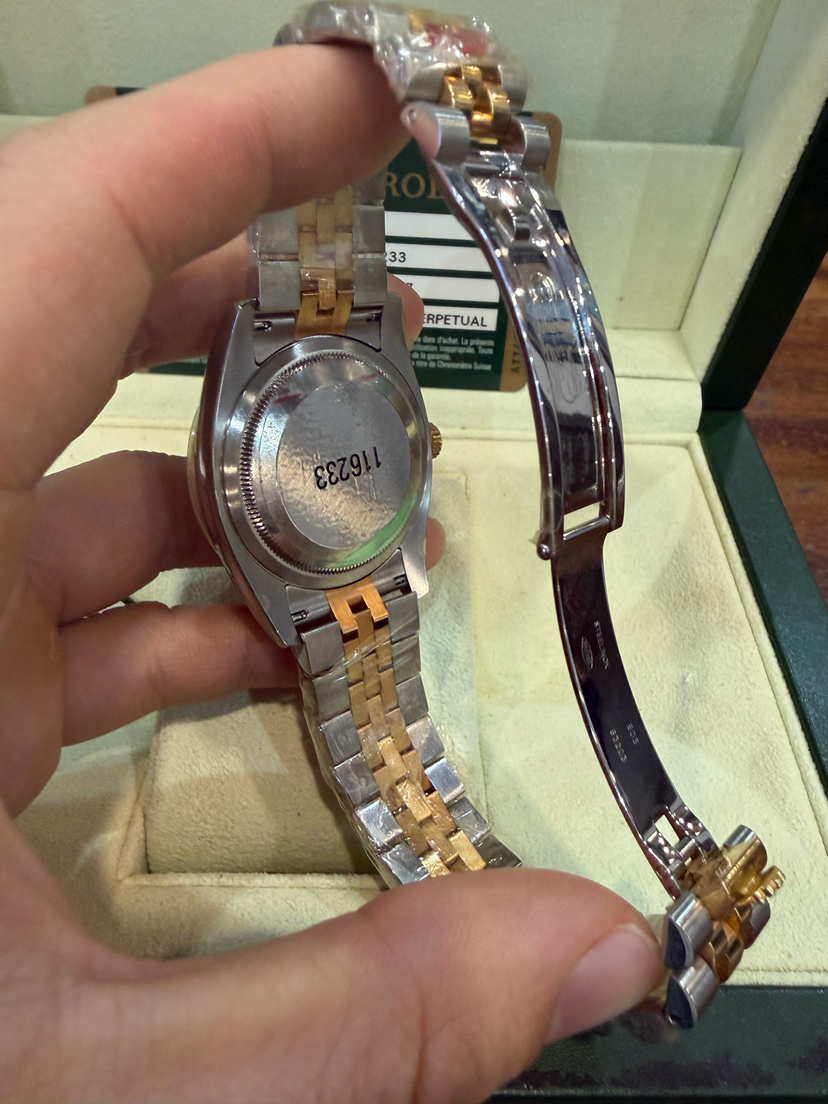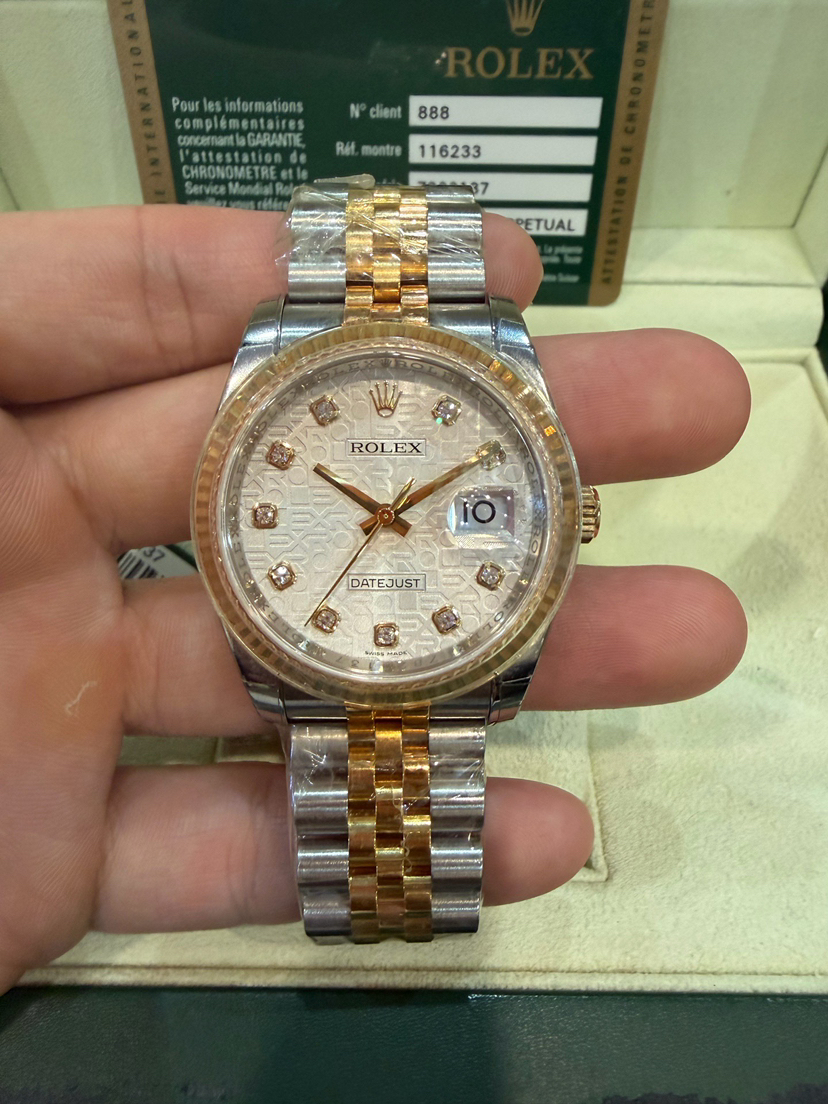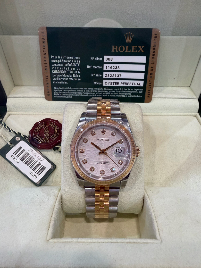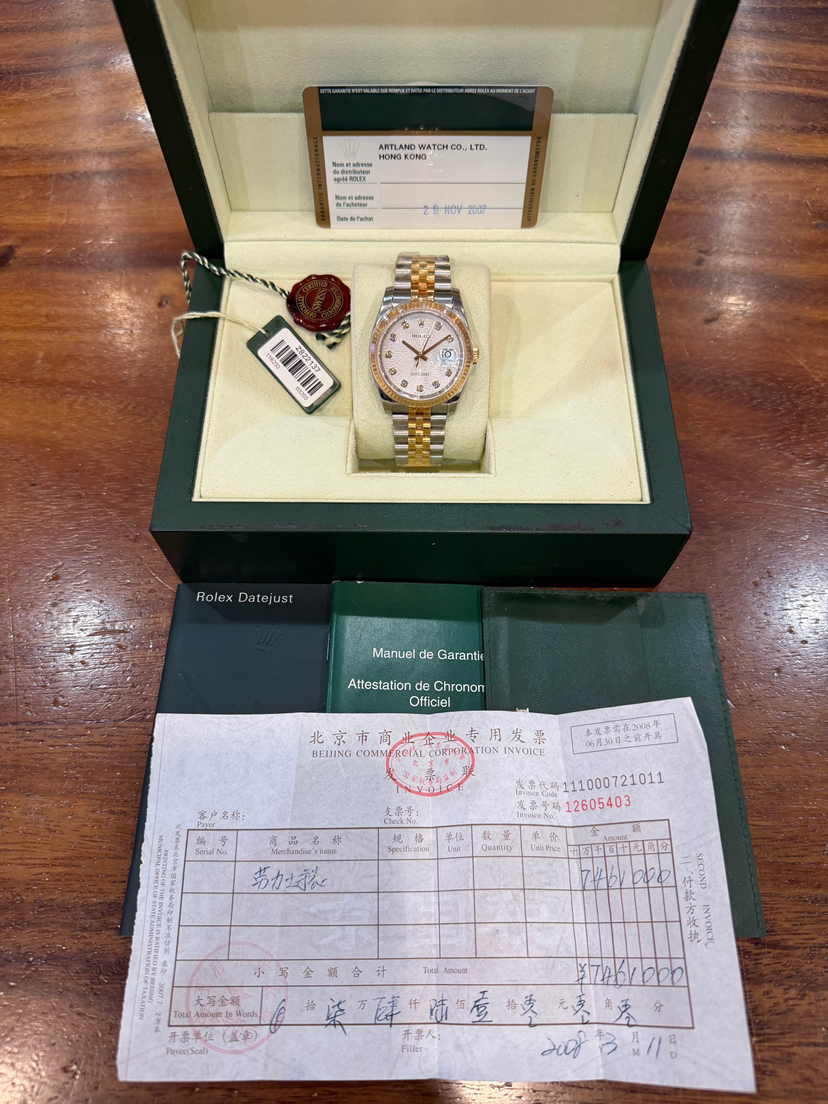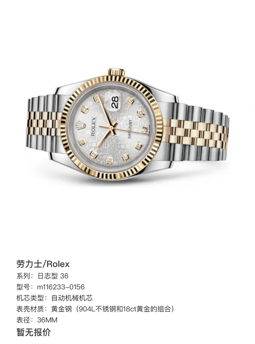 未使用全膜劳力士/Rolex 日志型 36 m116233-0156银电脑盘钻刻 自动机械机芯 黄金钢(904L不锈钢和18ct黄金的组合) 36MM 专柜价105600 2007年Z字头库存全新全套
