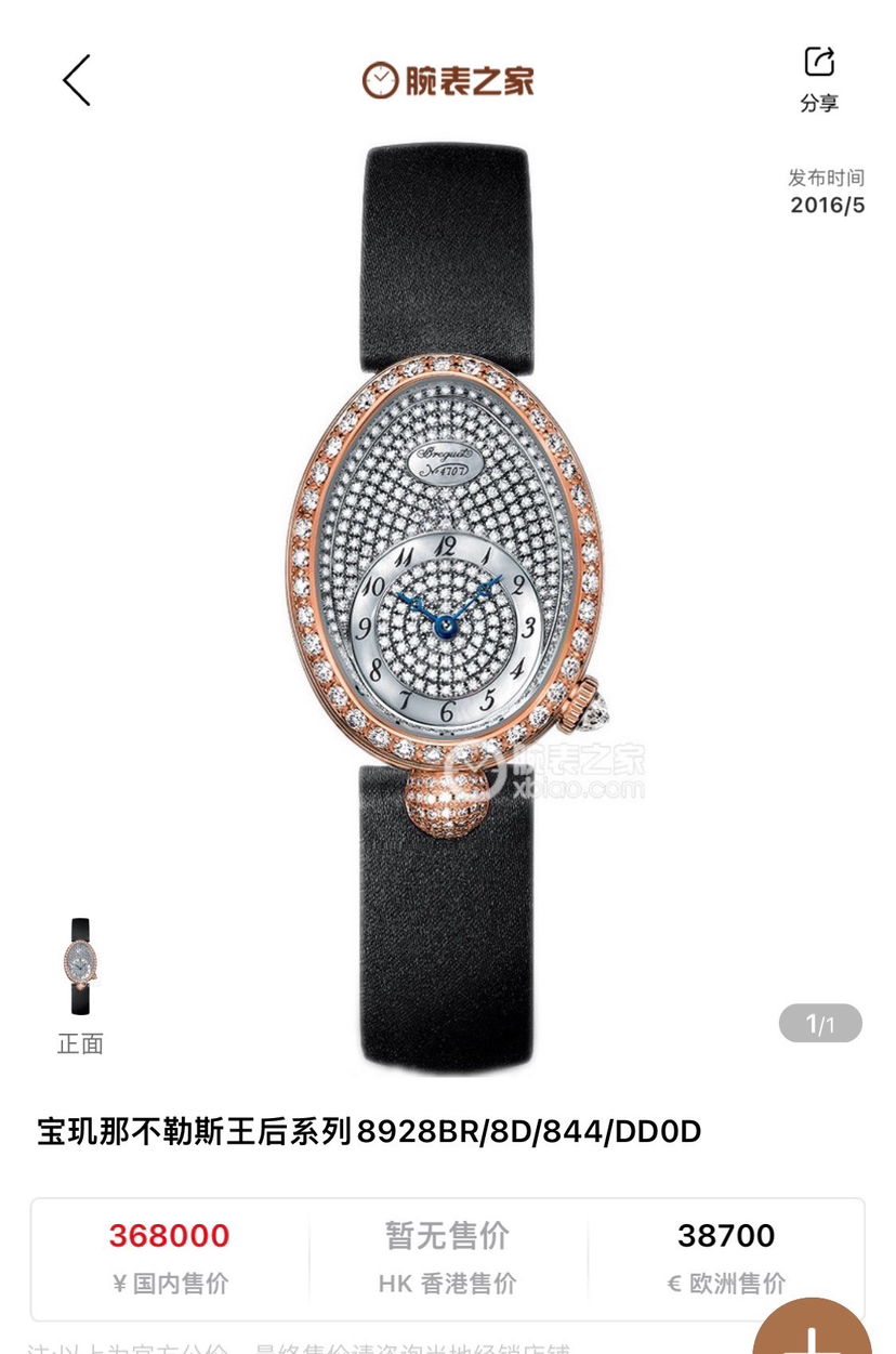 宝玑/Breguet 那不勒斯王后系列8928BR/8D/844/DD0D 自动机械女士腕表,18k玫瑰金材质,33 x 24.95毫米表径,满天星 原镶钻,专柜价368000元,现货单表好价!