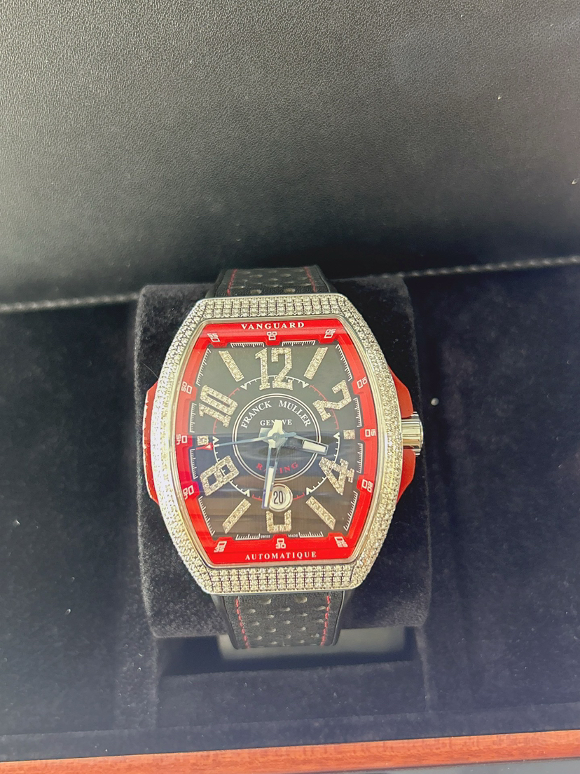 FM法兰克穆勒 新款V45红色 男士后钻 自动机械44×53.7mm 酒桶形表盘 运动感十足 超级时尚款 上手帅气十足 好价出~