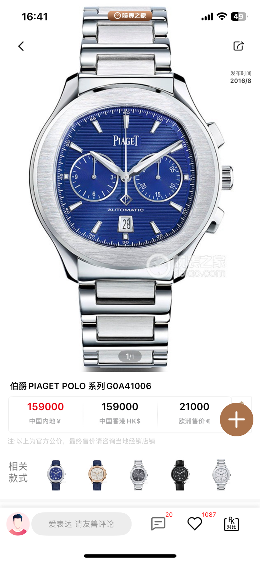 伯爵PIAGET POLO 系列精钢自动机械男表