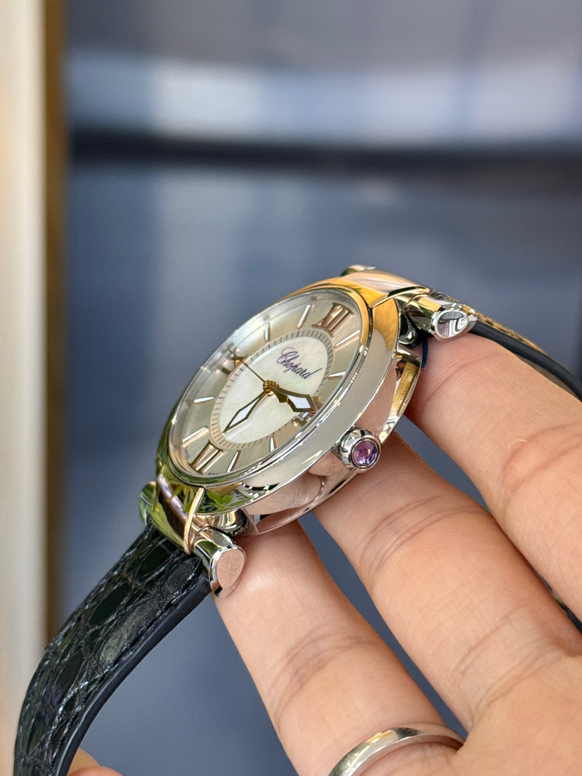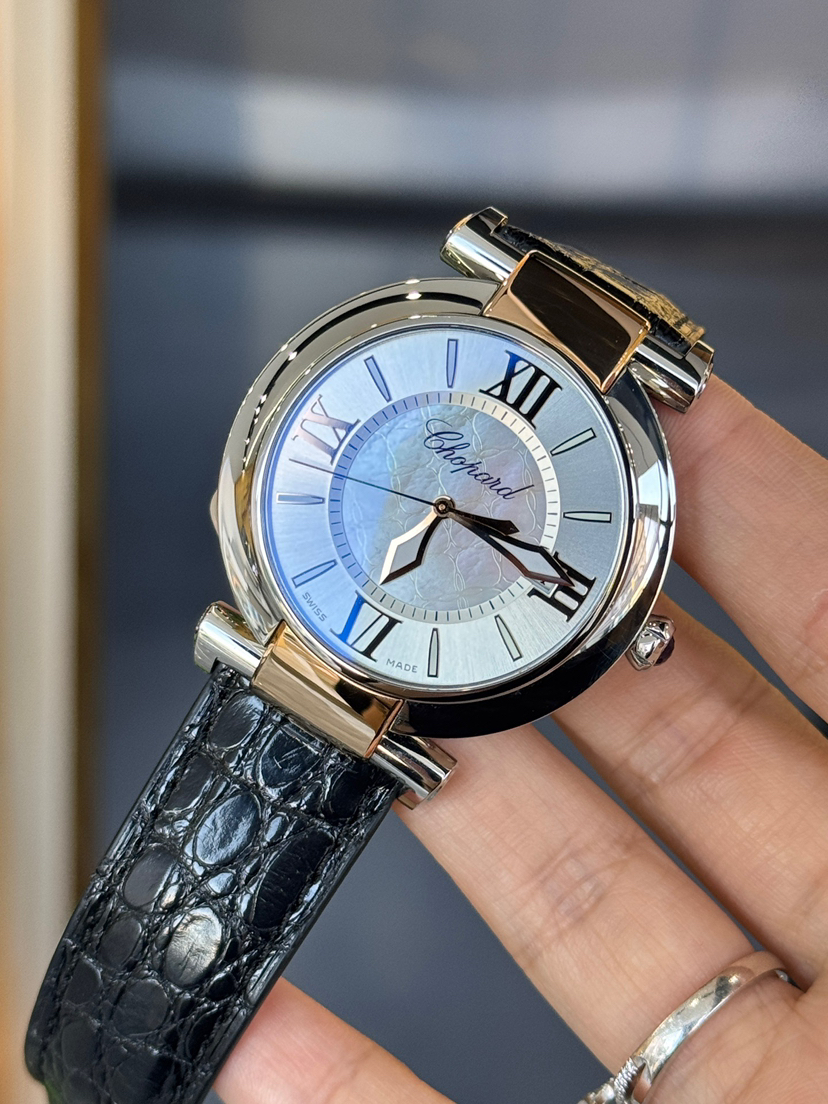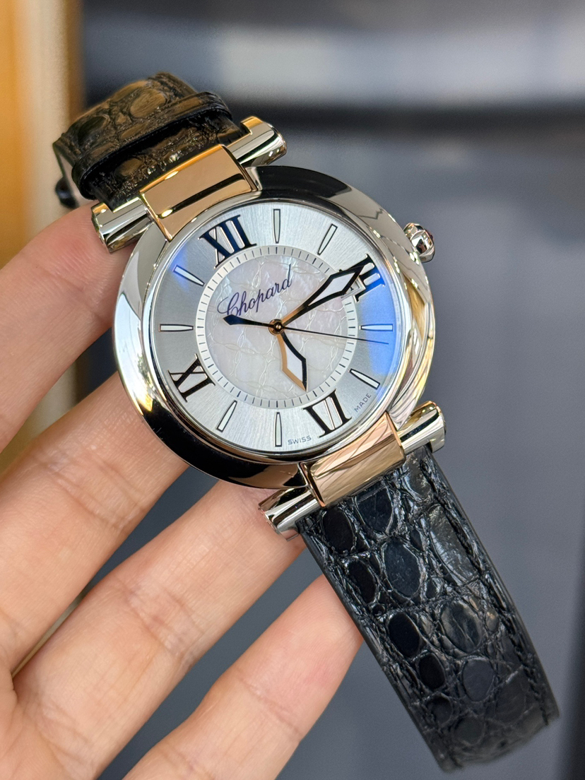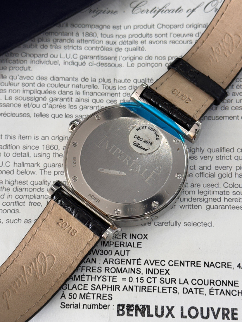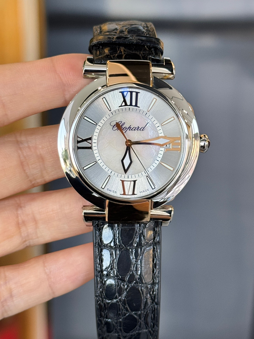 萧邦/Chopard IMPERIALE 388531-6001(贝母盘)自动机械机芯 精钢和18k玫瑰金材质 40表径 日历窗口 13年全套闲置未使用 专柜价55000