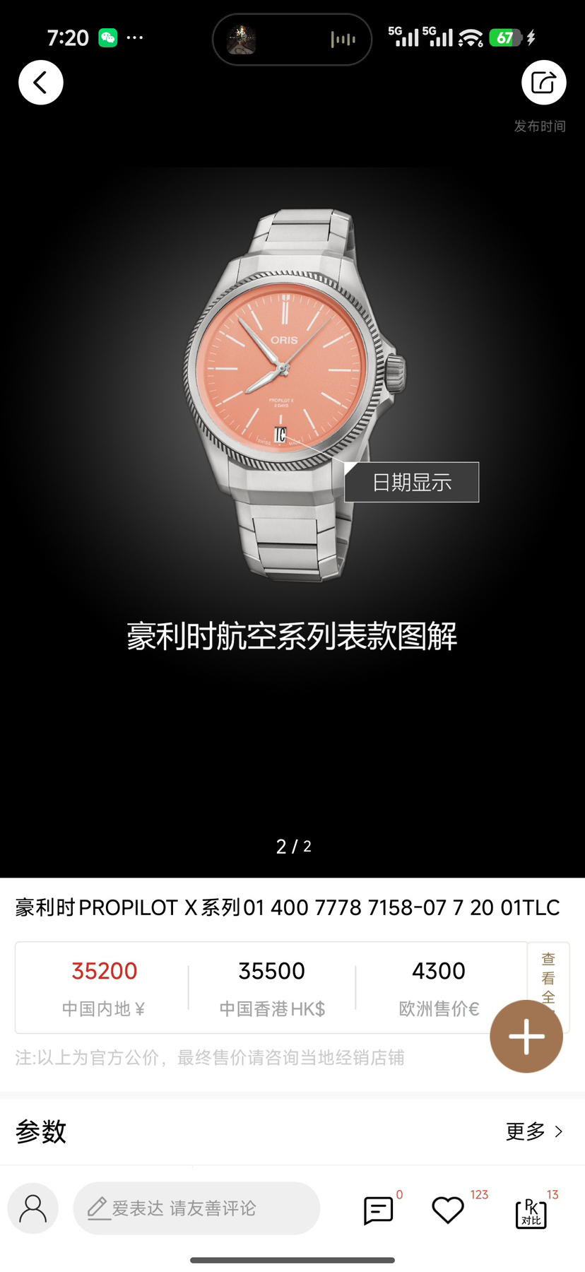公价35200元 100米防水 钛金属表壳