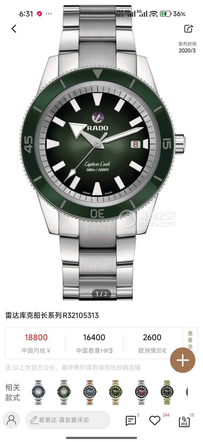 雷达Captain Cook库克船长R32105313机械男性