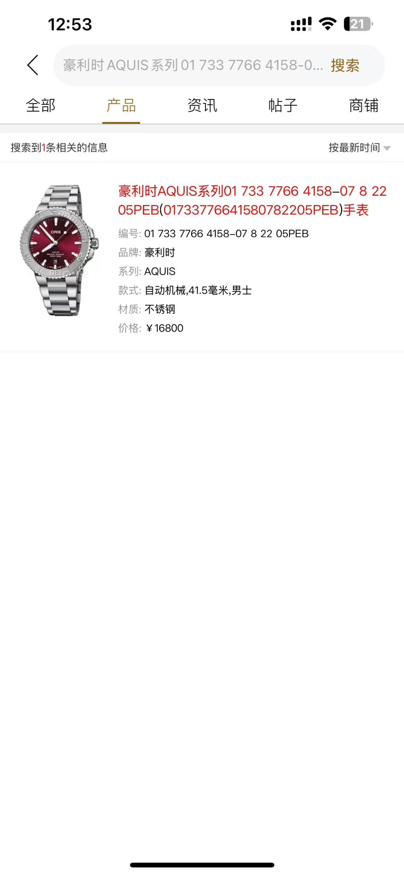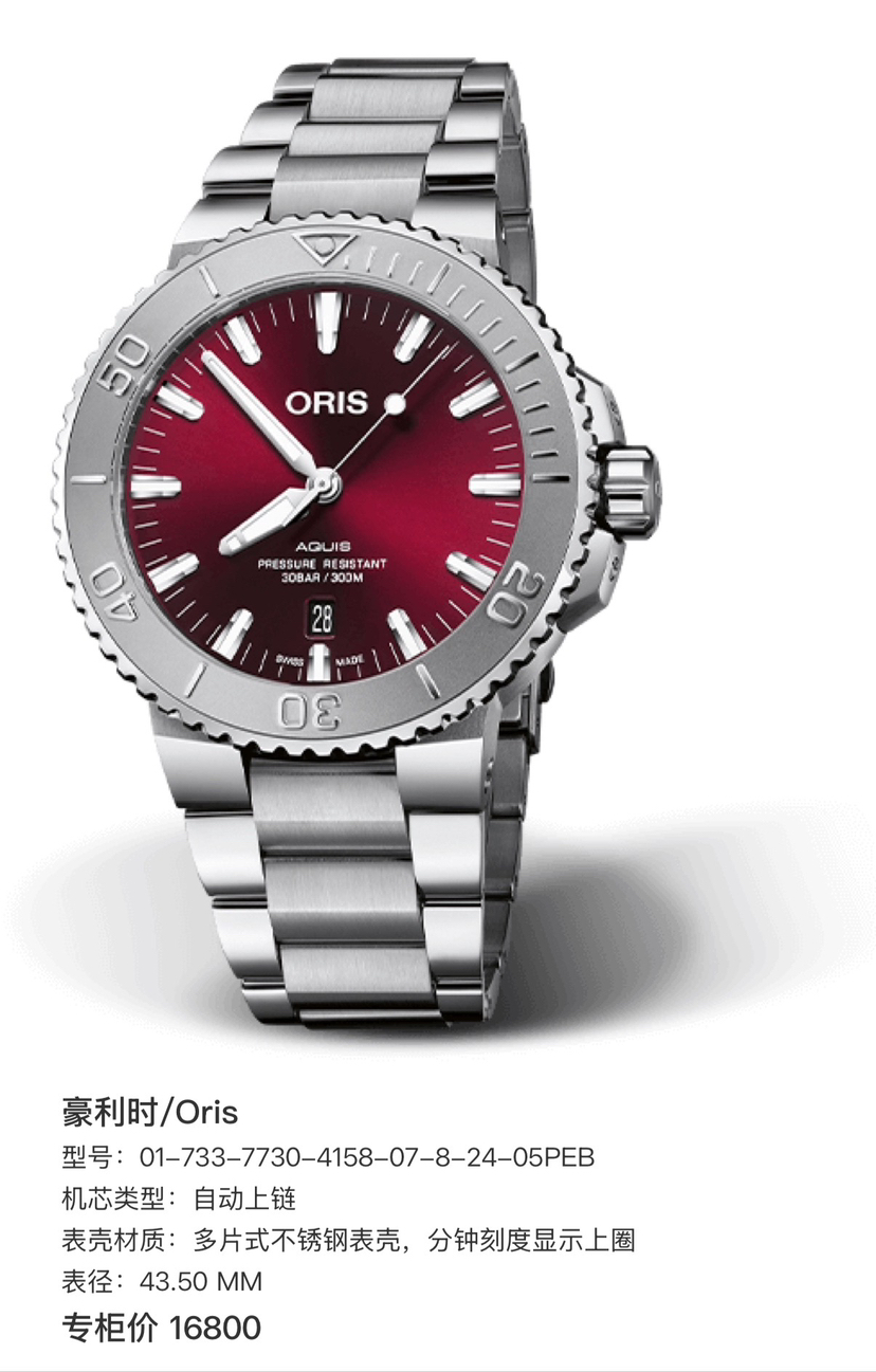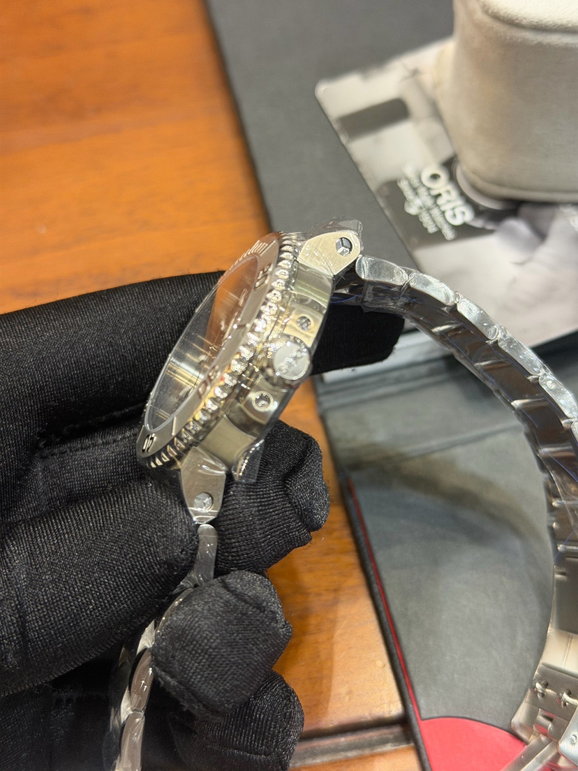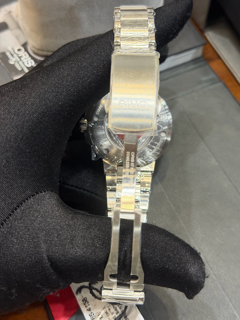 未使用26卡 全膜 豪利时/Oris 01-733-7730-4158-07-8-24-05PEB 自动上链 多片式不锈钢表壳,分钟刻度显示上圈 43.50 MM
