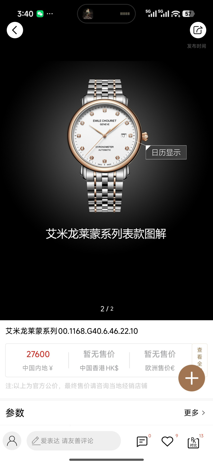 艾米龙莱蒙00.1168.G40.6.46.22.10机械男性