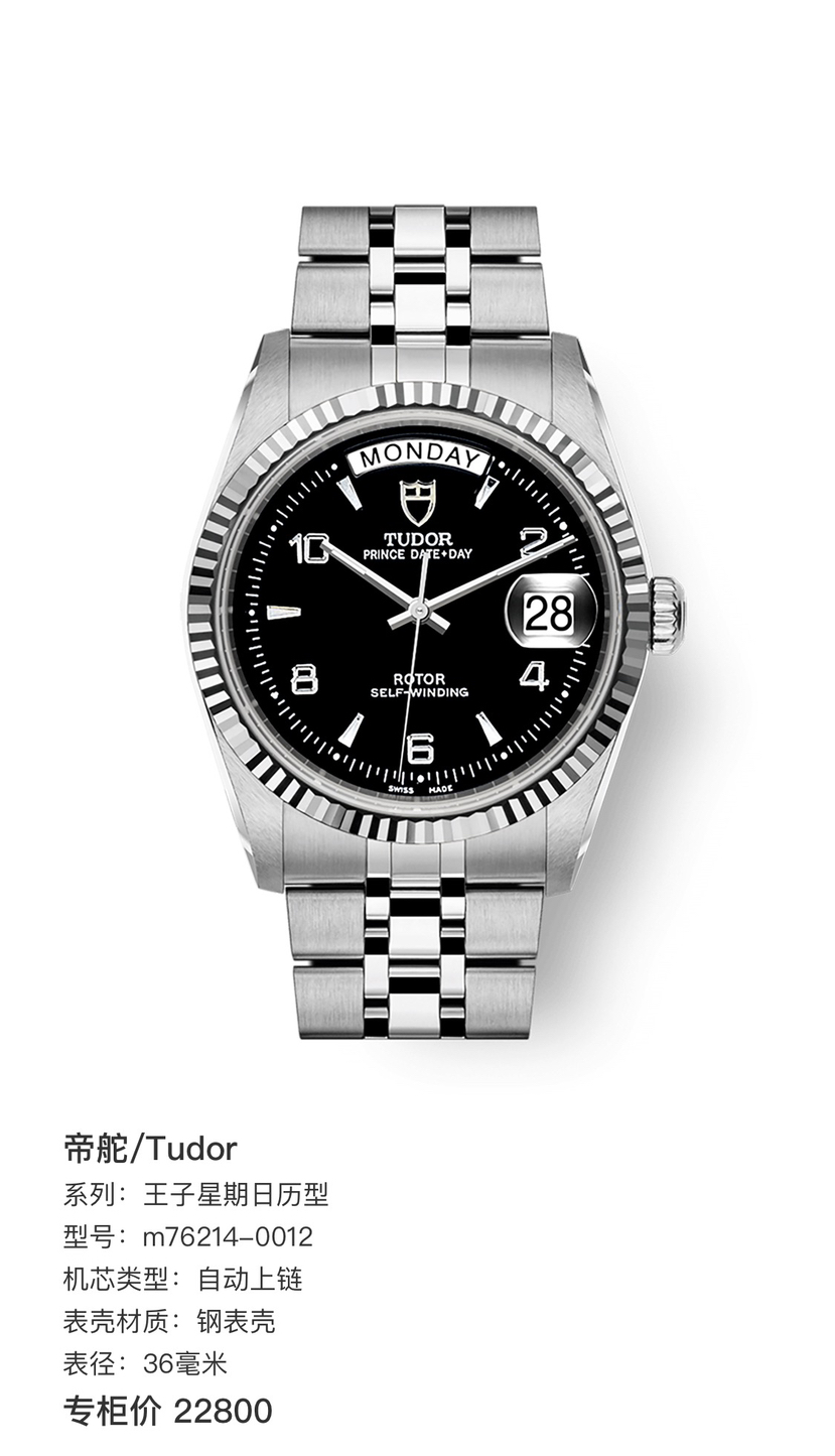 帝舵/Tudor 王子星期日历型 m76214-0012 自动上链 钢表壳 36毫米 专柜价22800