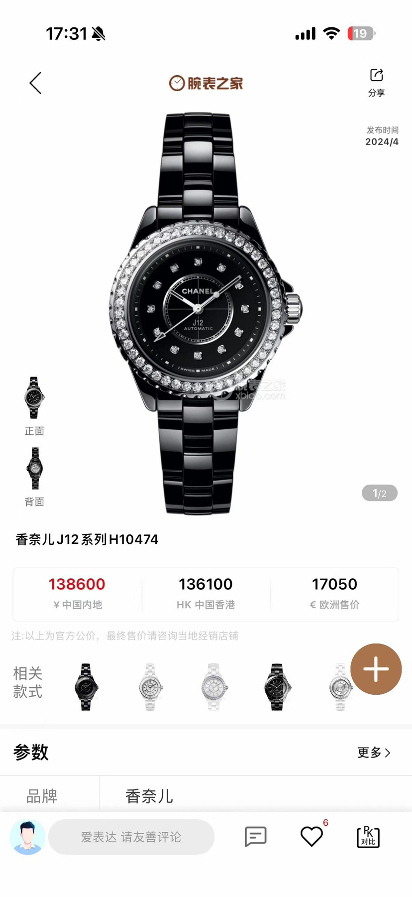 香奈儿J12 H10474,国专全套,24年最新款,表径33,内外原镶钻,最新款透底机械,公价138600,好价出