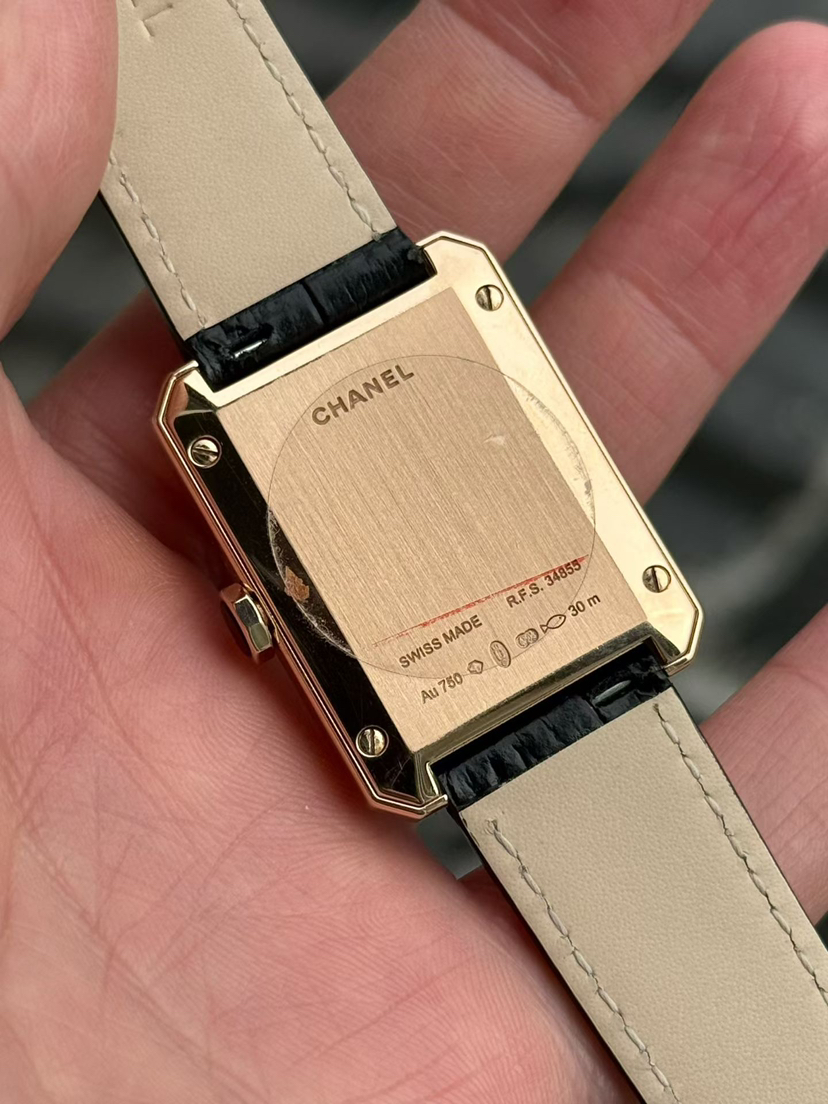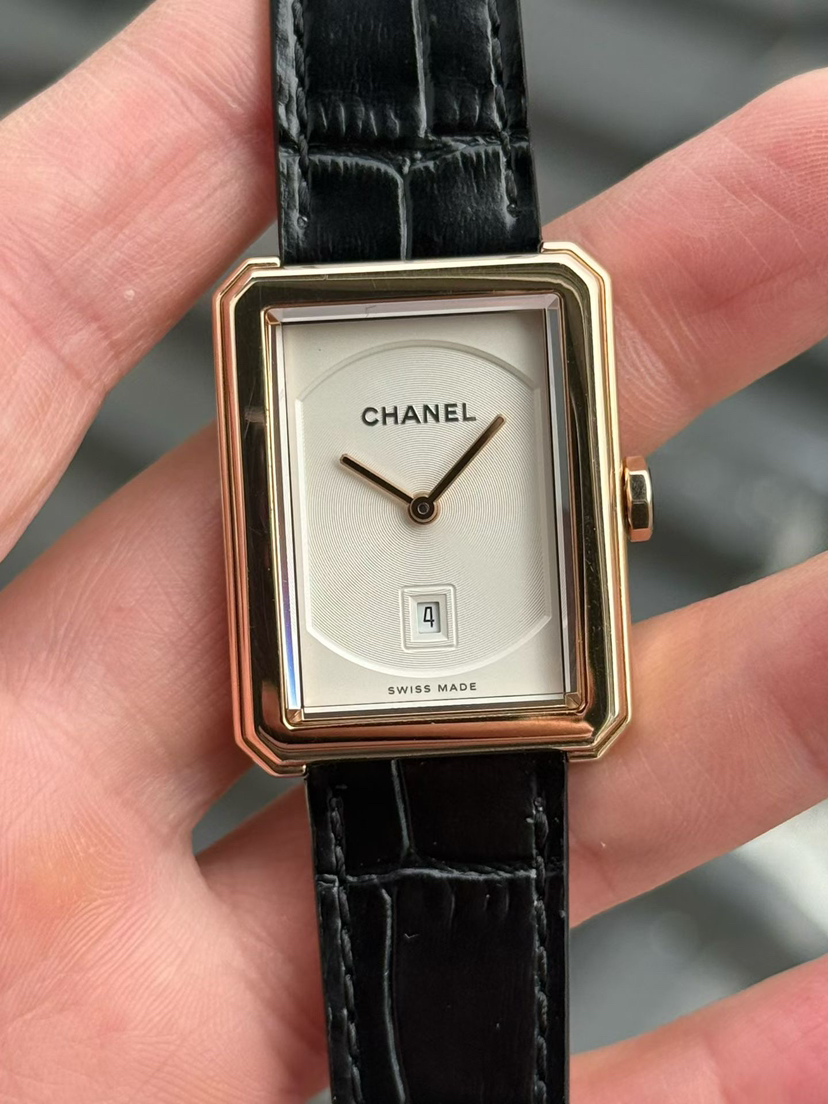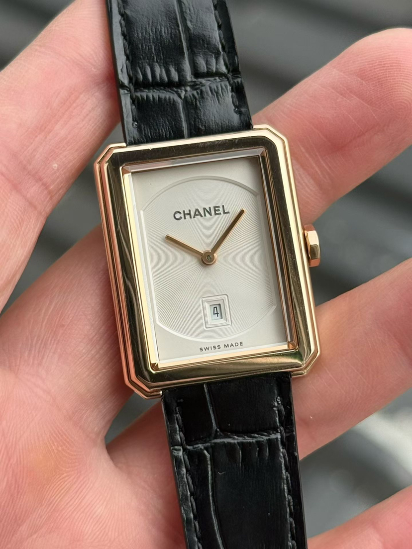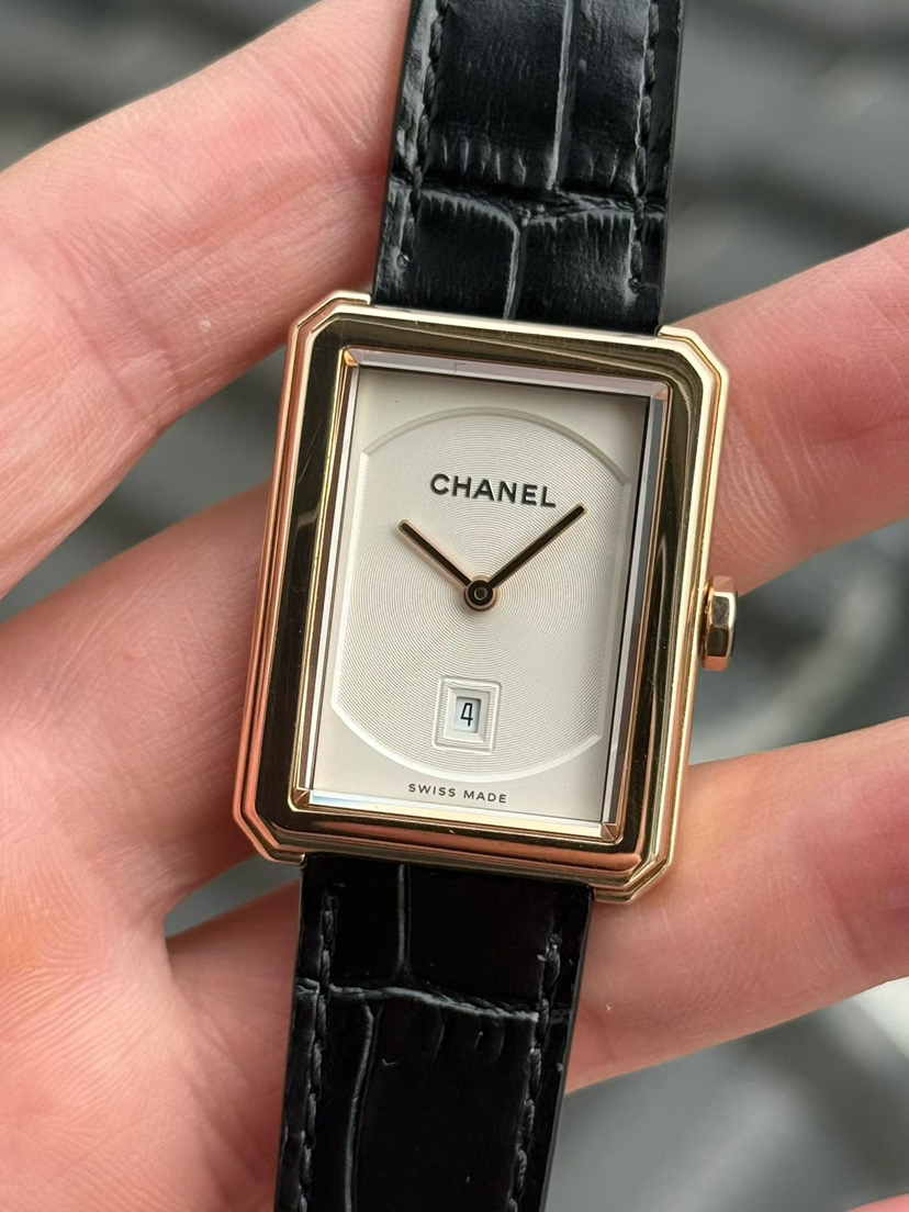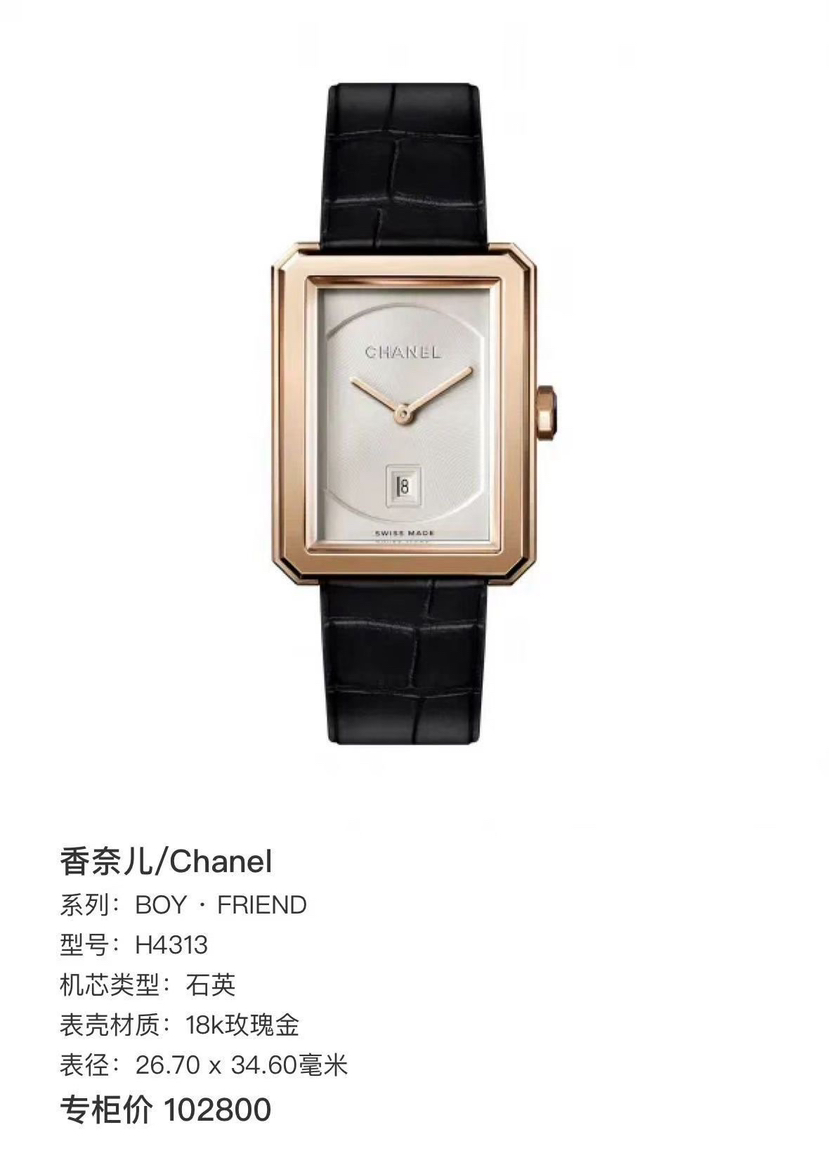 香奈儿Boy.Friend系列H4313,18k玫瑰金材质,26.7×34.6mm表径,石英动力,经典方糖造型,