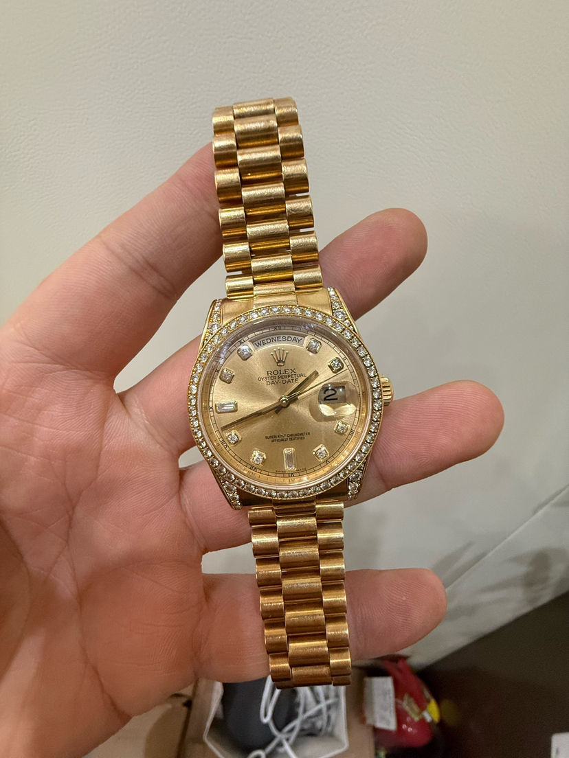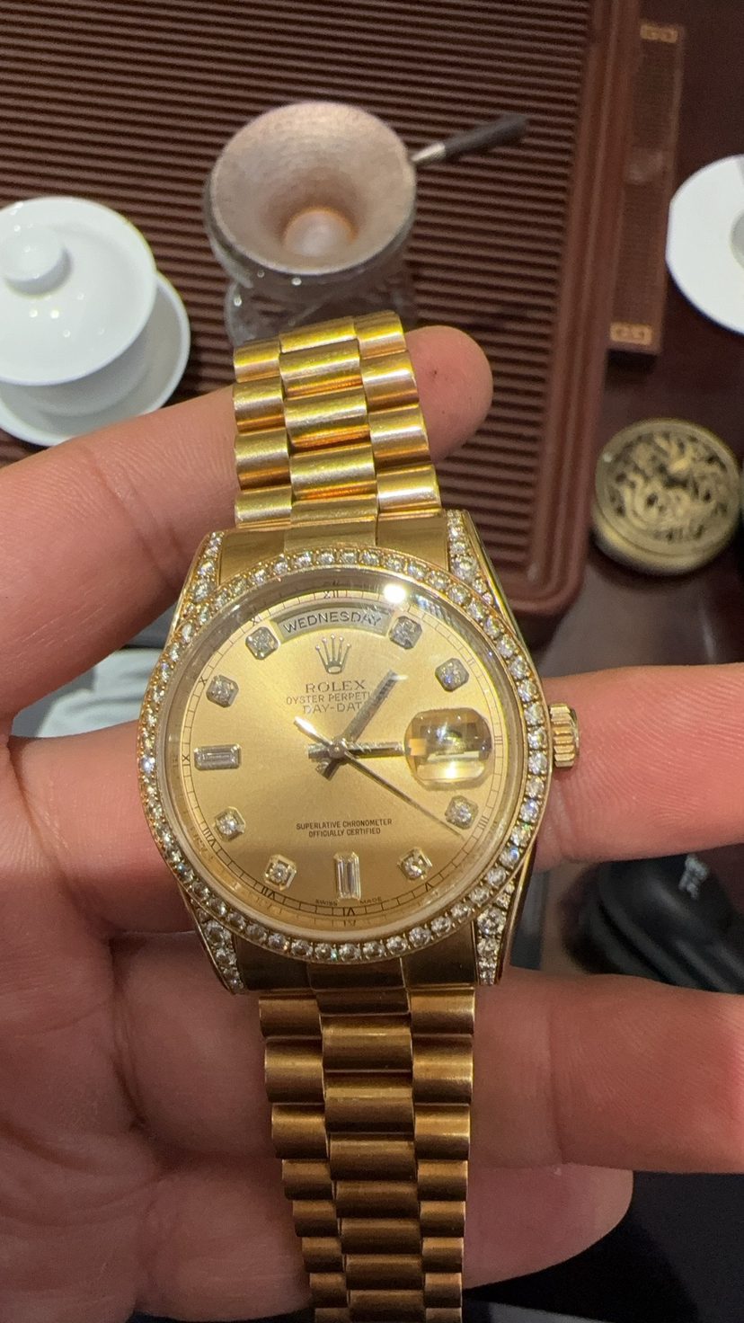 劳力士/Rolex 星期日历型 m118388-0017 自动机械 18k黄金镶钻 36MM 专柜价424300 单表全长。