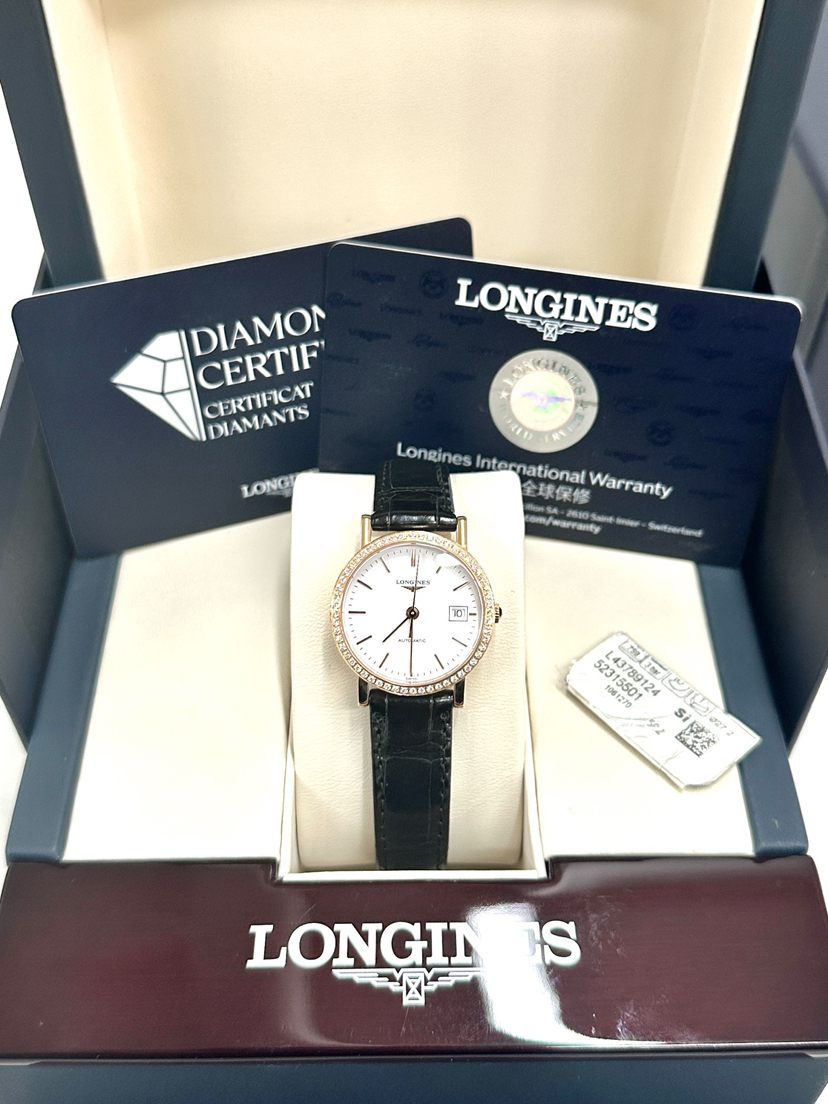 (国行全新全套9月卡27.2mm原钻)浪琴/Longines 浪琴表博雅系列 L4.378.9.12.4 自动上链机械机芯 18K玫瑰金 27.20mm外圈原镶钻 专柜价60500 国行全新全套 好价