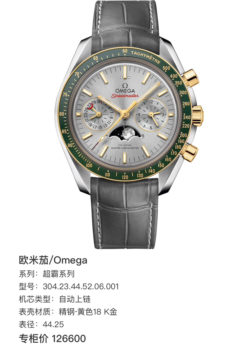 欧米茄/Omega 超霸系列 304.23.44.52.06.001 自动上链 精钢‑黄色18 K金 44.25 附件:未使用全套 专柜价126600