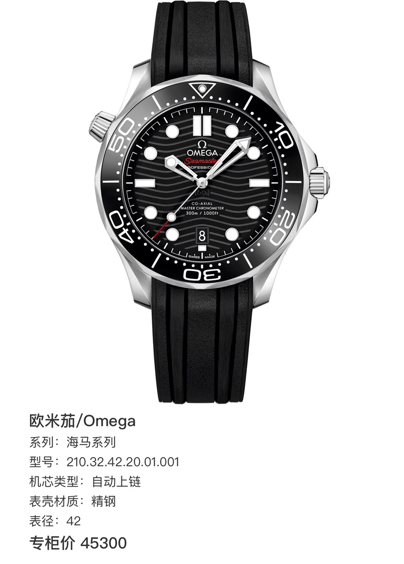 欧米茄/Omega 海马系列 210.32.42.20.01.001 自动上链 精钢 42 专柜价45300。附件 未使用全套