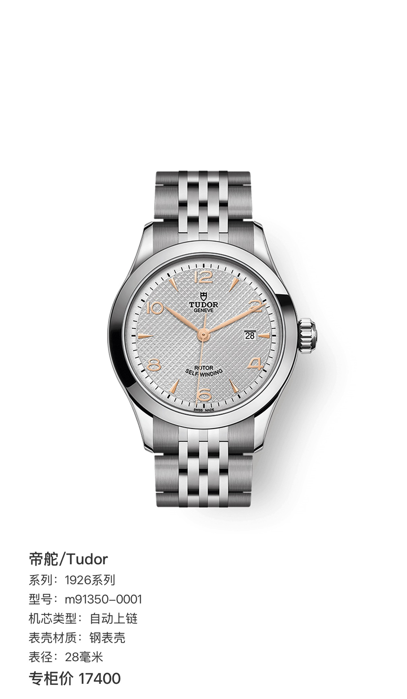 帝舵 1926系列 m91350-0001,银盘金针,28mm,专柜价17400。国行全新全套12月卡,好价秒发。