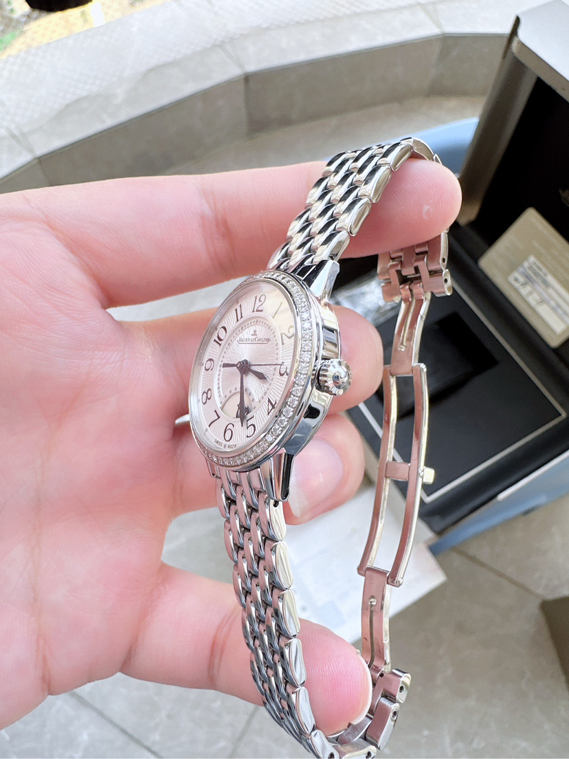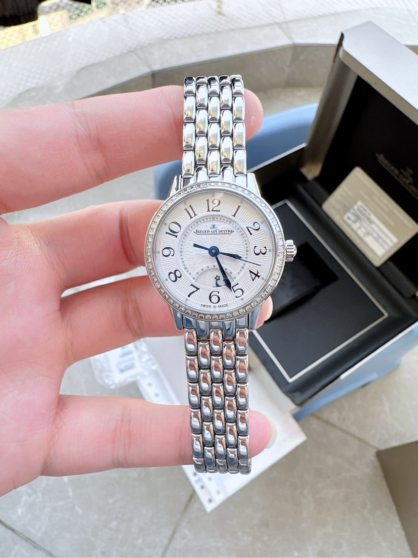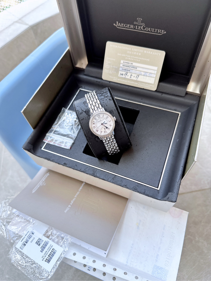 积家 约会系列 精钢自动机械女表Q3468130,29mm表径银色盘面阿拉伯数字刻度,经典蓝钢大三针昼夜显示,2019年保卡联保八年到2027年,专柜原价涨到140000元,现货一枚好价