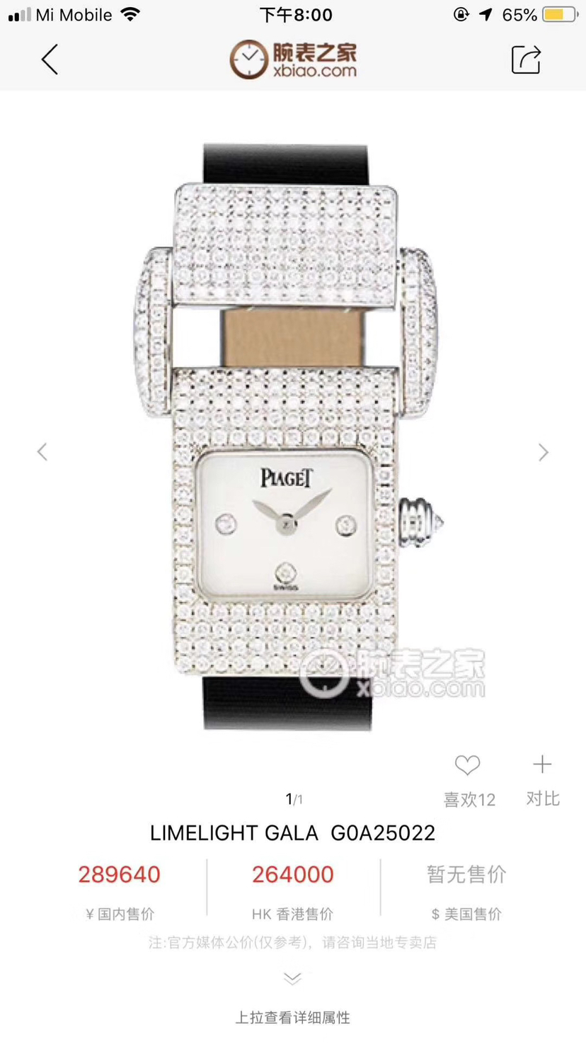 伯爵 LIMELIGHT GALA 系列 G0A25022 18k白金镶钻 表径24 石英 单表新 公价264000 超级好价