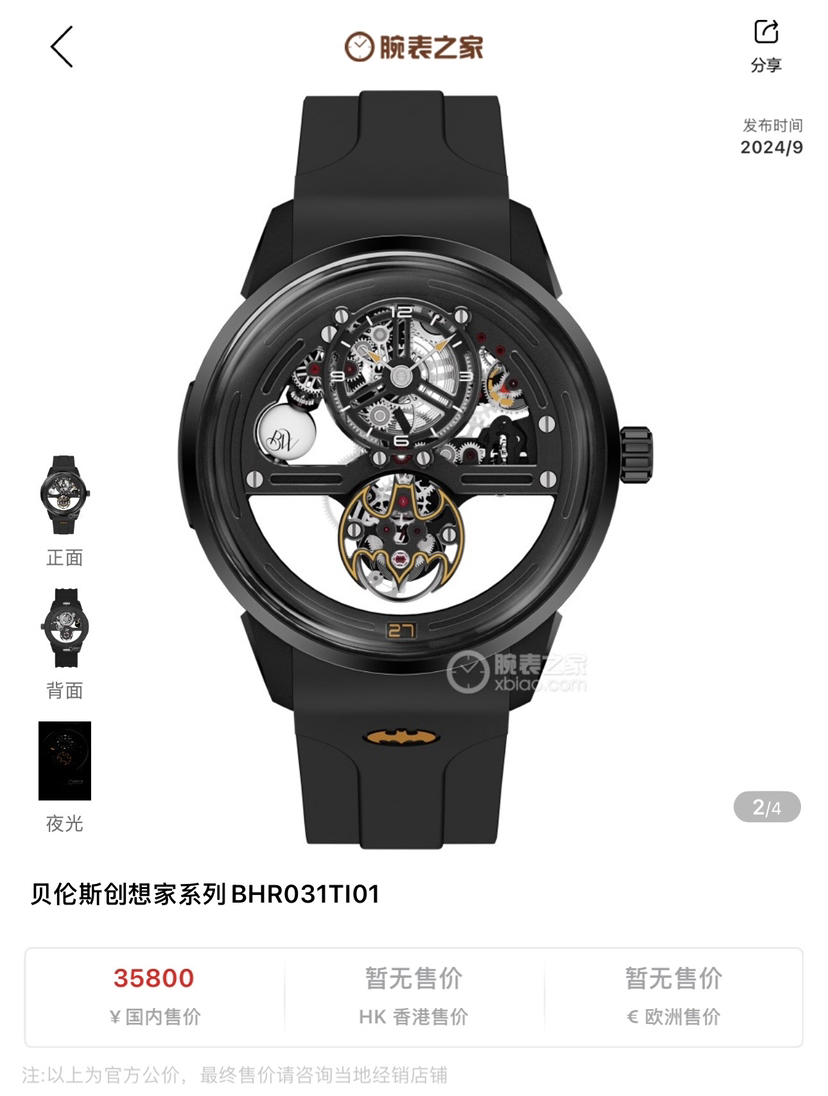 BM05机芯/无卡度陀飞轮/动储48/双向日期调校/全镂空设计/限量200只/公价35800。