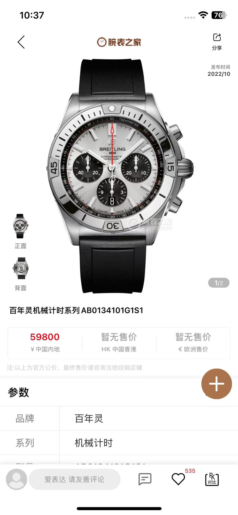 百年灵机械计时(Chronomat)AB0134101G1S1机械男性