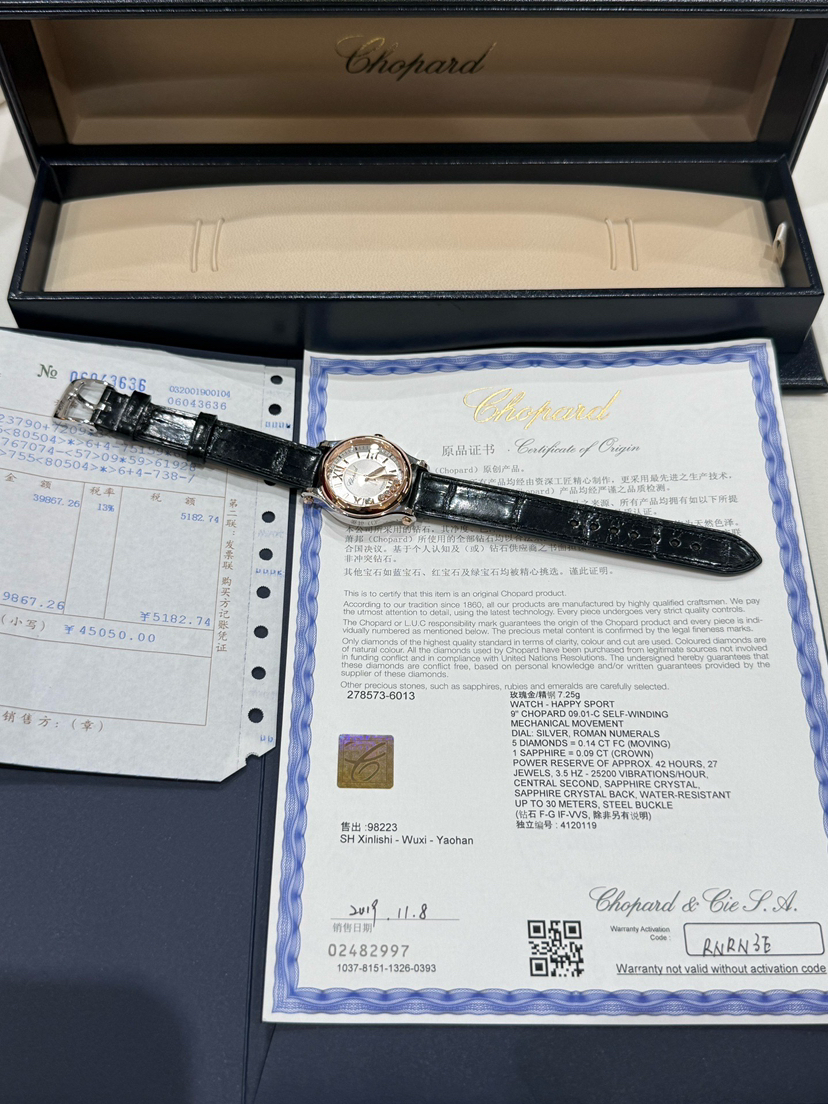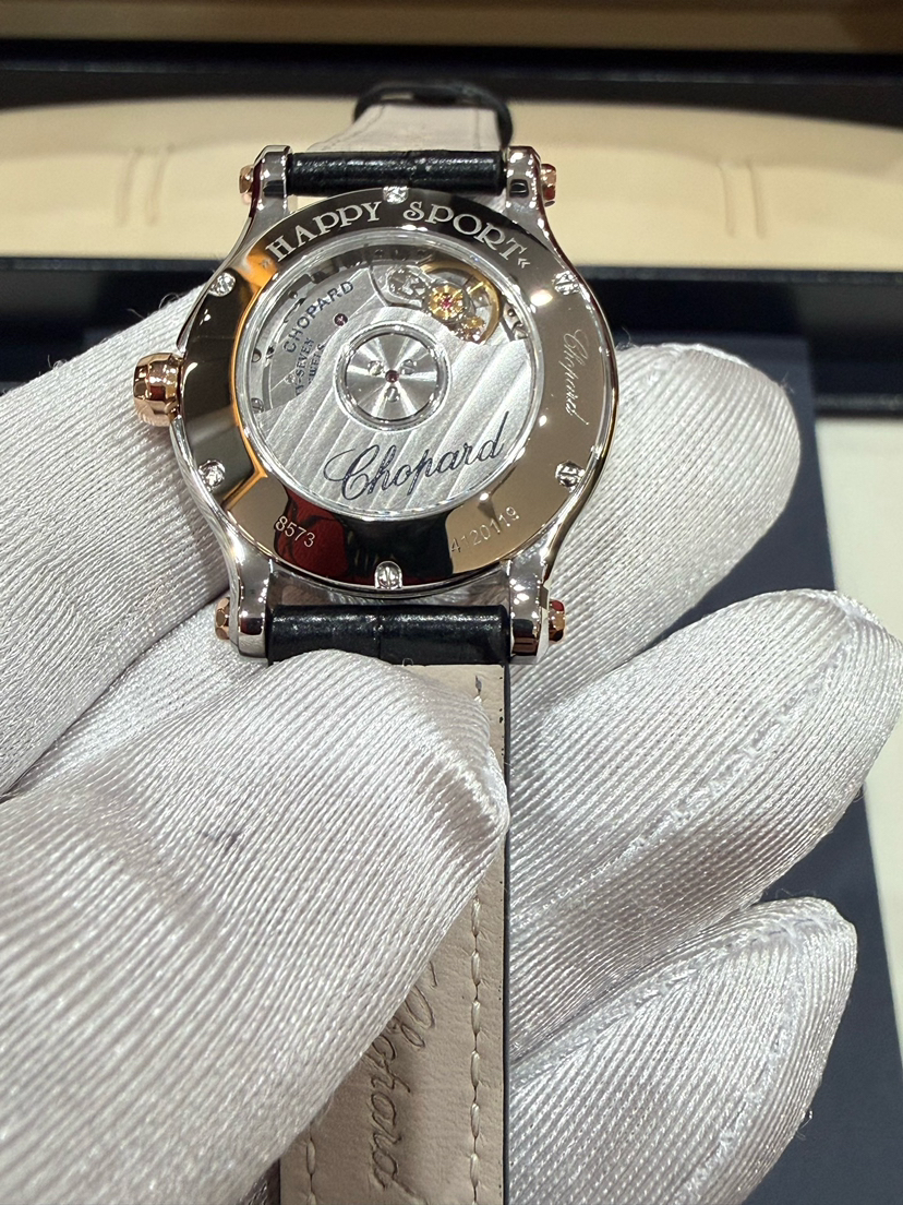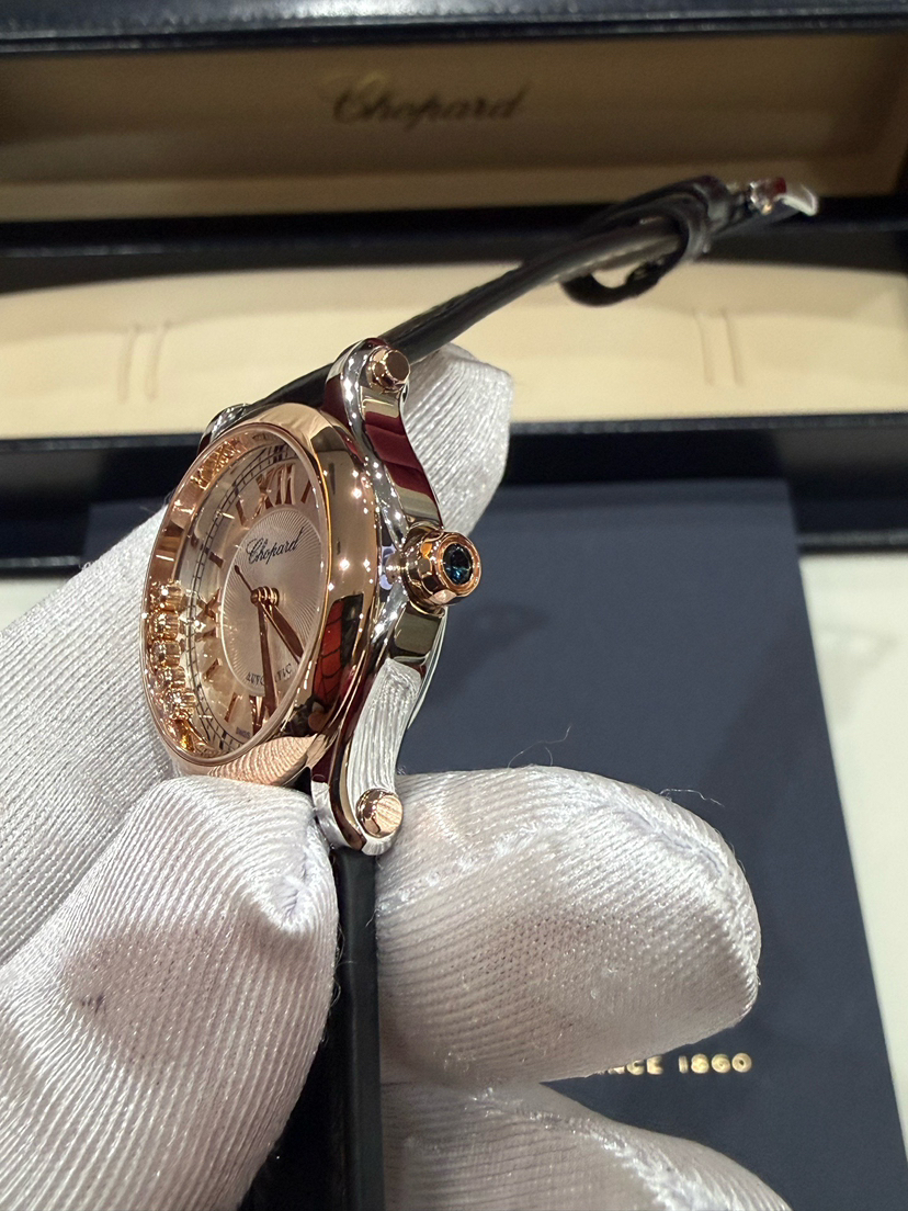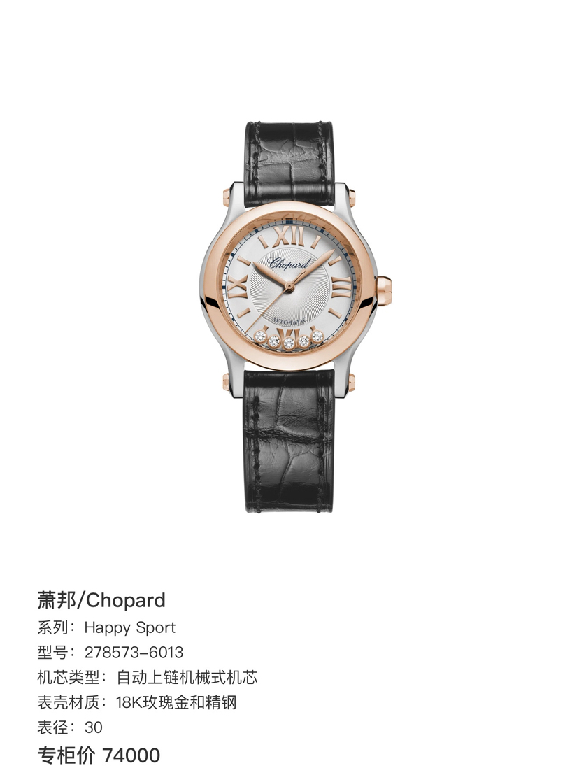 萧邦/Chopard Happy Sport 278573-6013 自动上链机械式机芯 18K玫瑰金和精钢 30 专柜价74000,