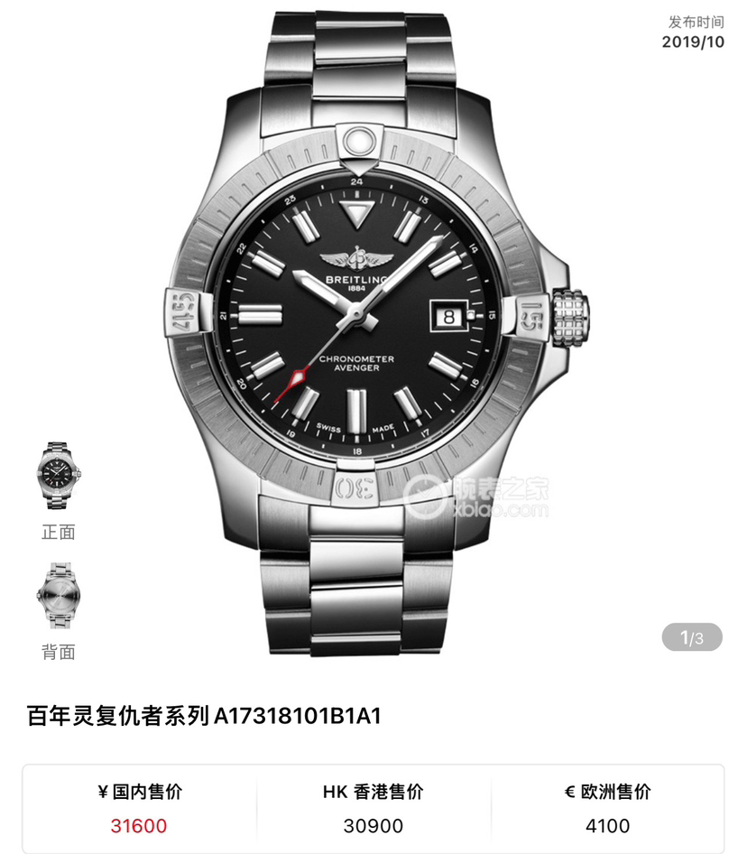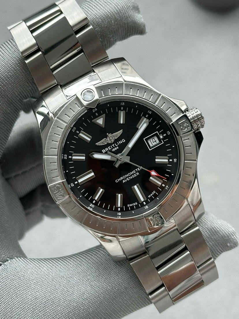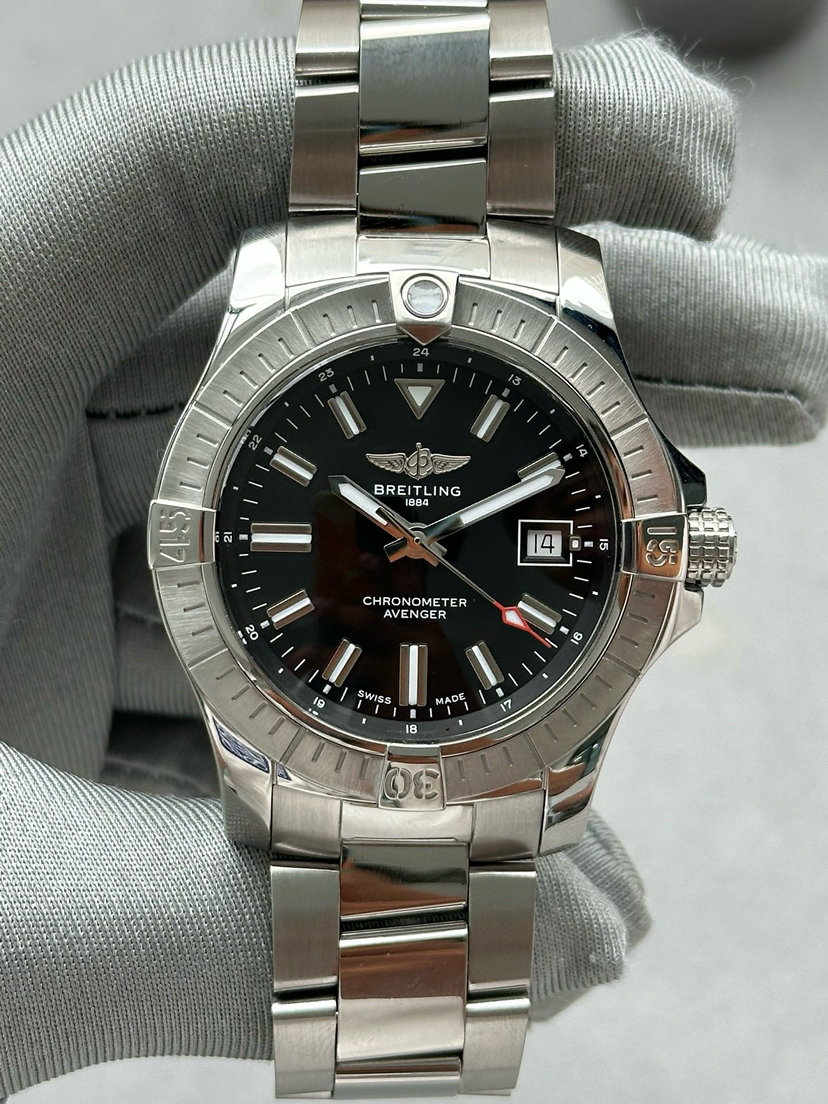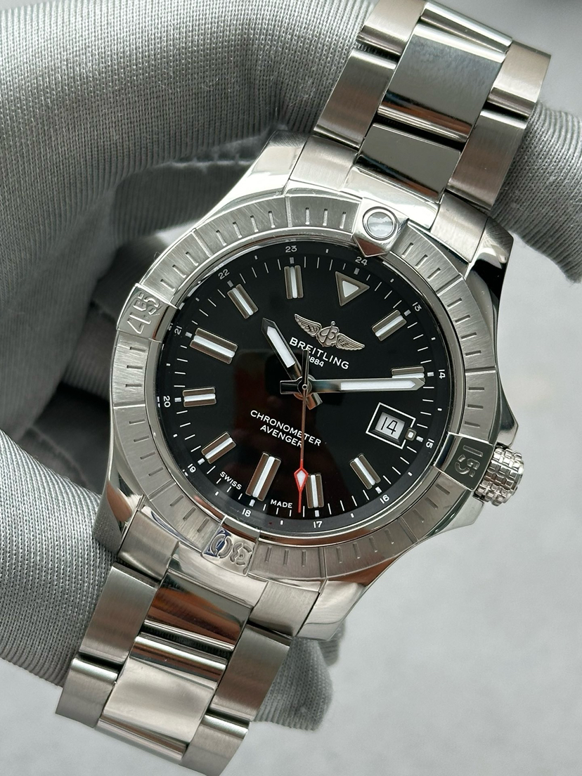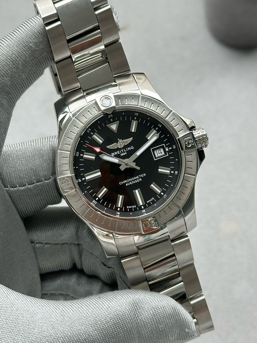 全套百年灵复仇者系列A17318101B1A1男士自动机械腕表 热门款复仇者 动力储备40个小时 黑色表盘 表径43mm 搭配折叠扣 密底机芯 外圈采用精钢材质打造 日历功能 专柜价31600 现货好价