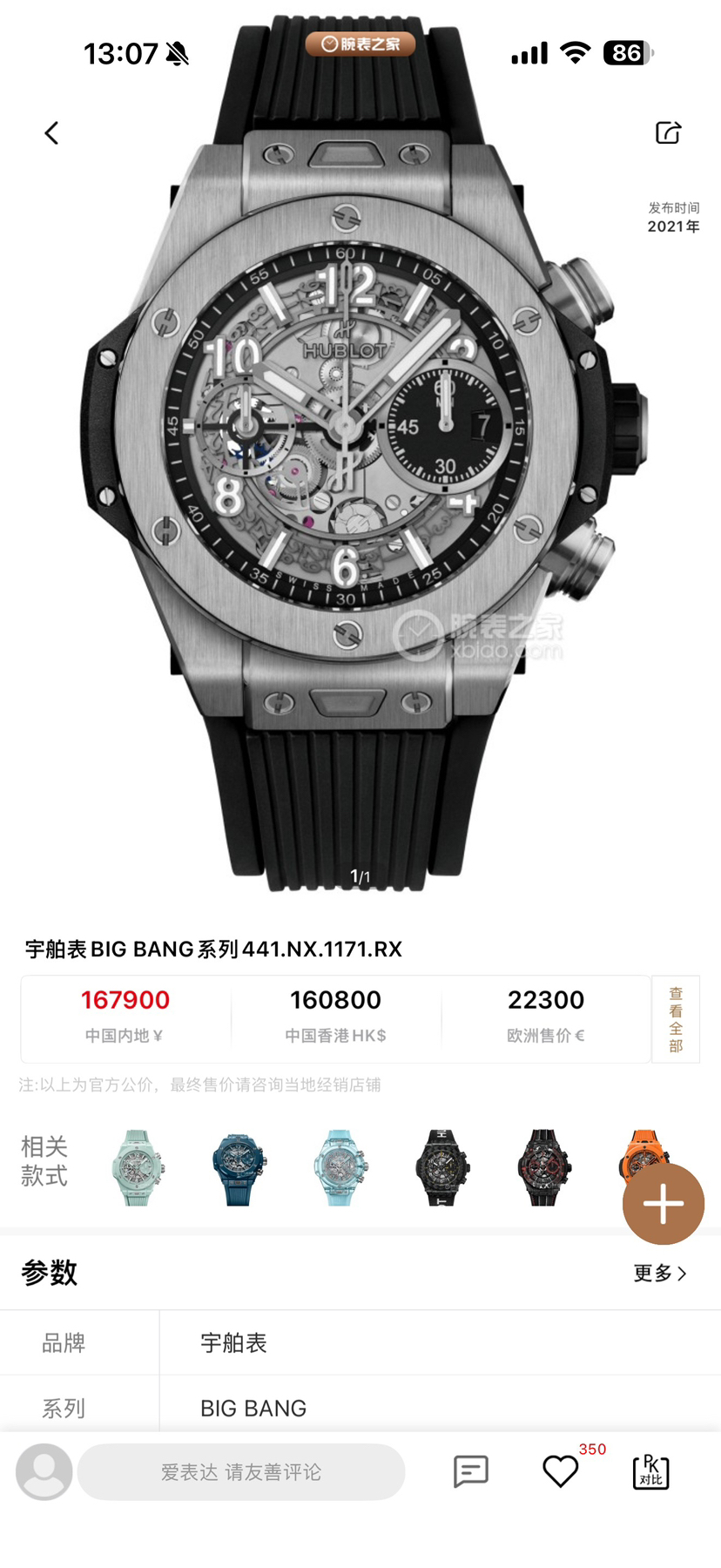 宇舶BIG BANG系列441.NX.1171.RX钛金属,2025年12月卡,未使用品,全套齐全,价格很不错