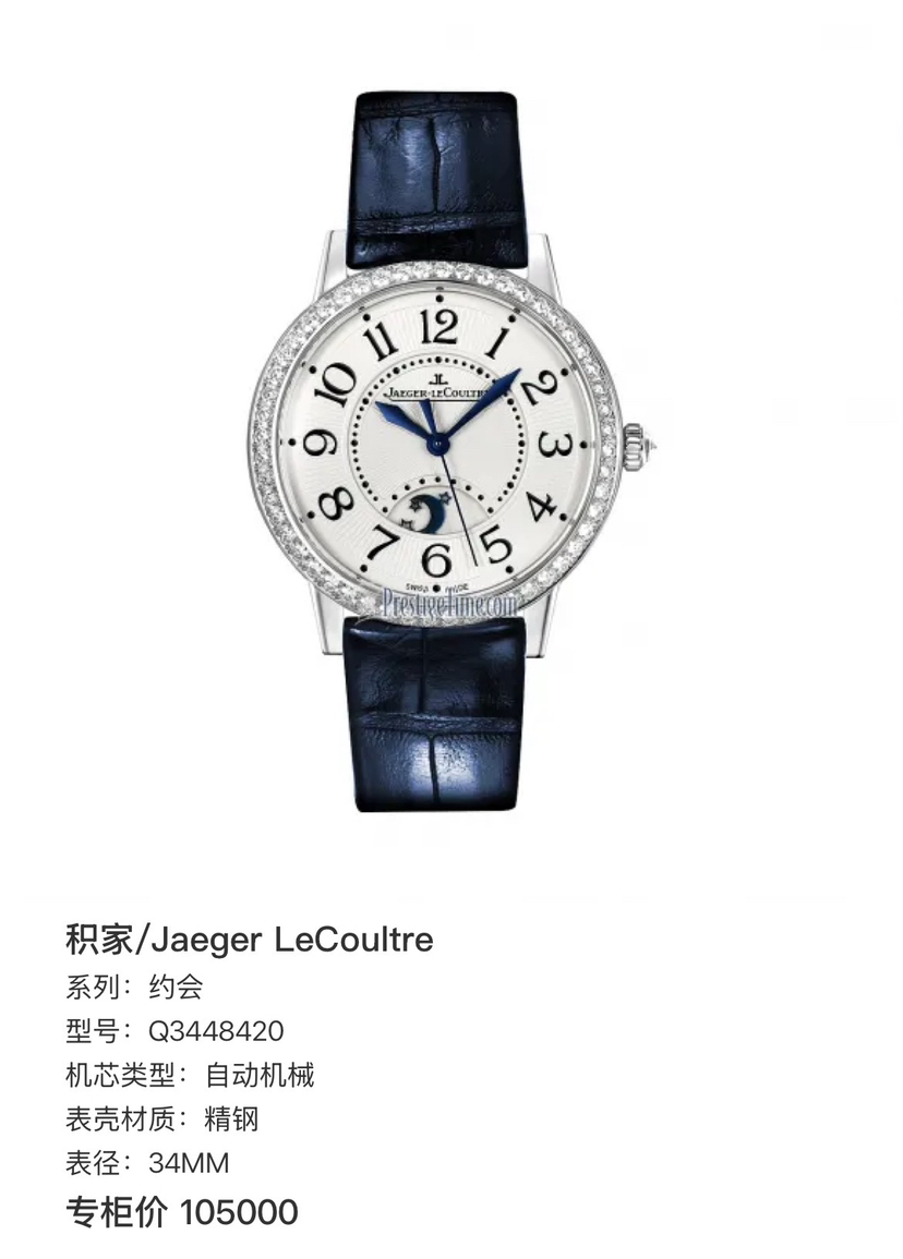 积家 约会 Q3448420 自动机械 精钢 34mm表径 专柜价105000 单表好价。