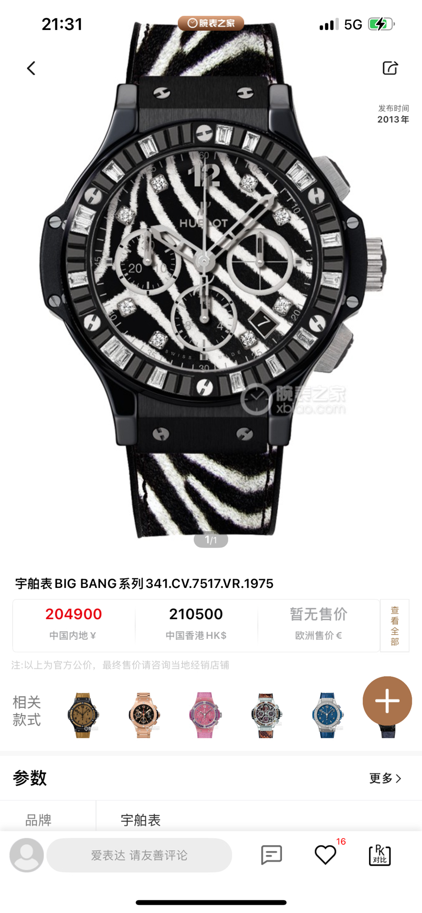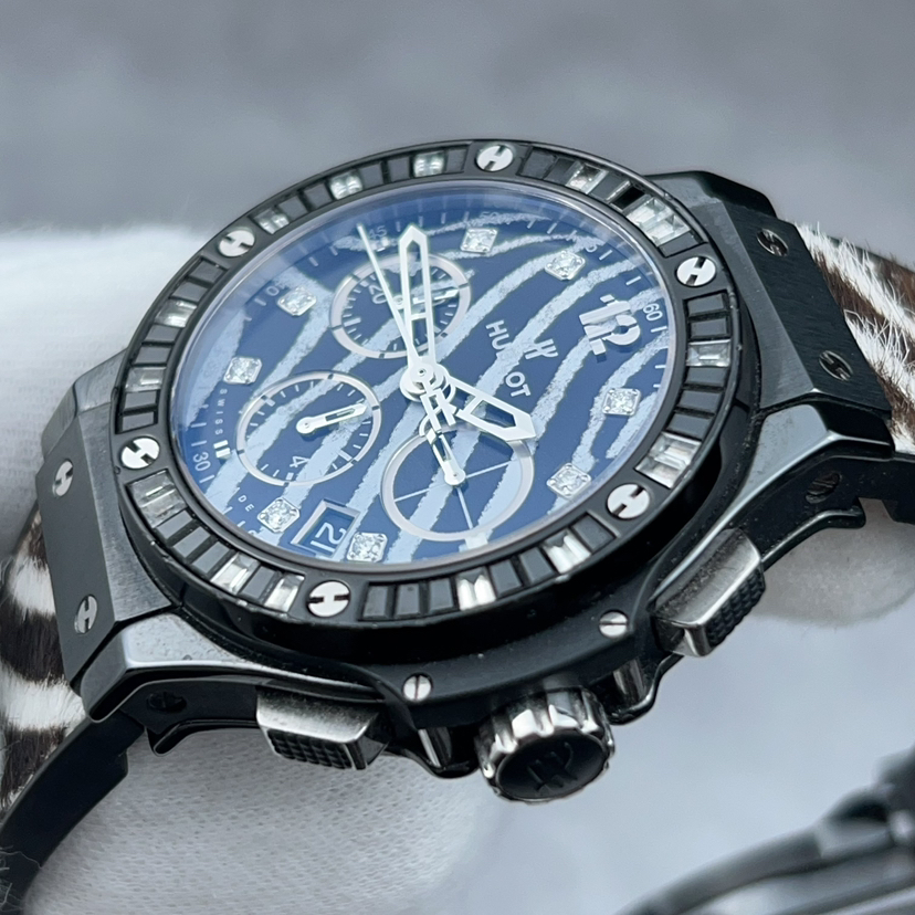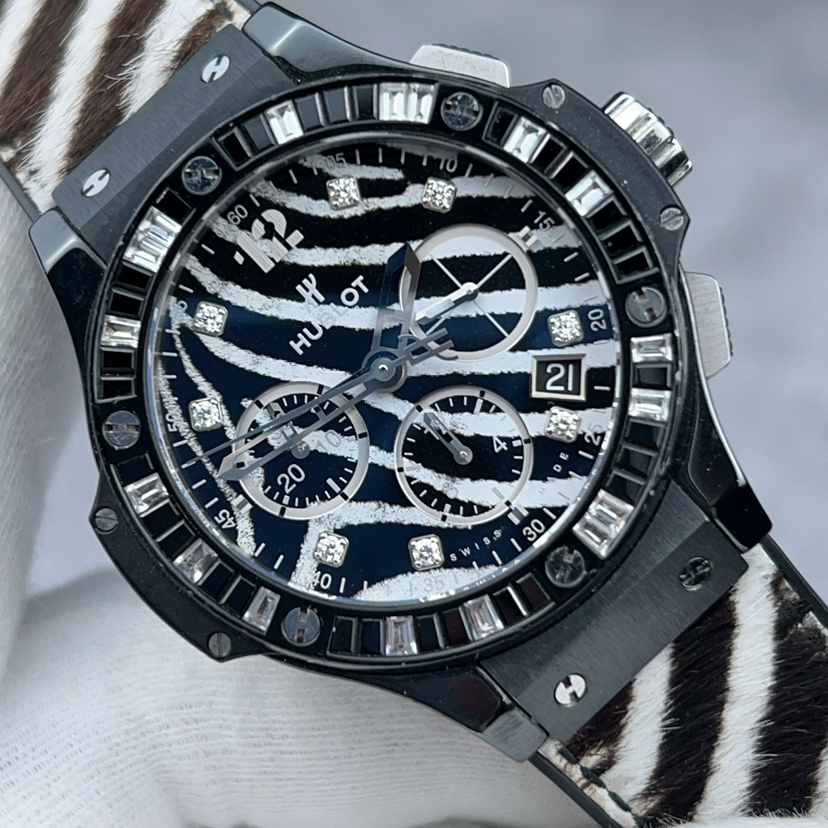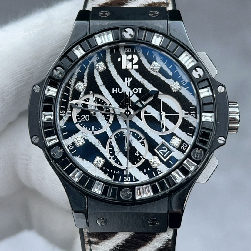 宇舶大爆炸341.CV.7517.VR.1975,原钻斑马,全球限量250枚,黑陶瓷材质,原镶钻,黑色宝石,表径41mm,黑白斑马纹表盘,钻石刻度,日期显示,计时功能,透底自动机械,公价204900,现货好价带走