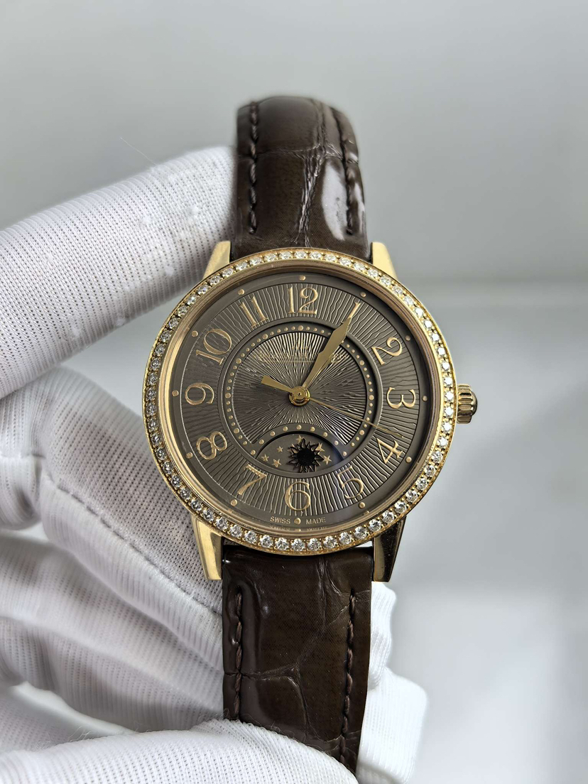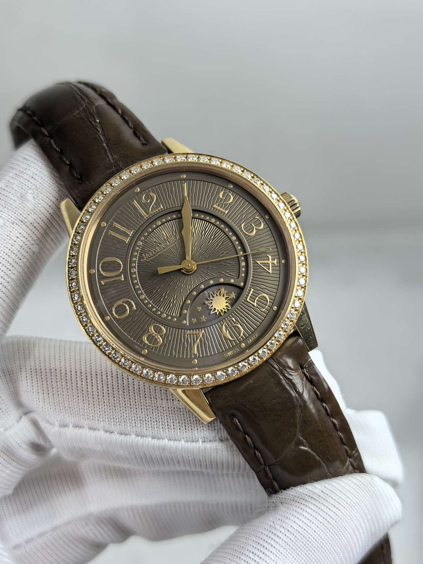 积家344242J经典约会系列 34表径 全自动机械 18K玫瑰金原镶钻 简洁大三针.昼夜显示功能 优雅庄重咖啡盘 高配折叠扣 专柜原价近17万 现极品单表,超值好价