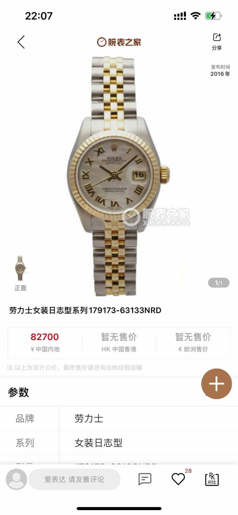 劳力士女装日志型179173机械男性