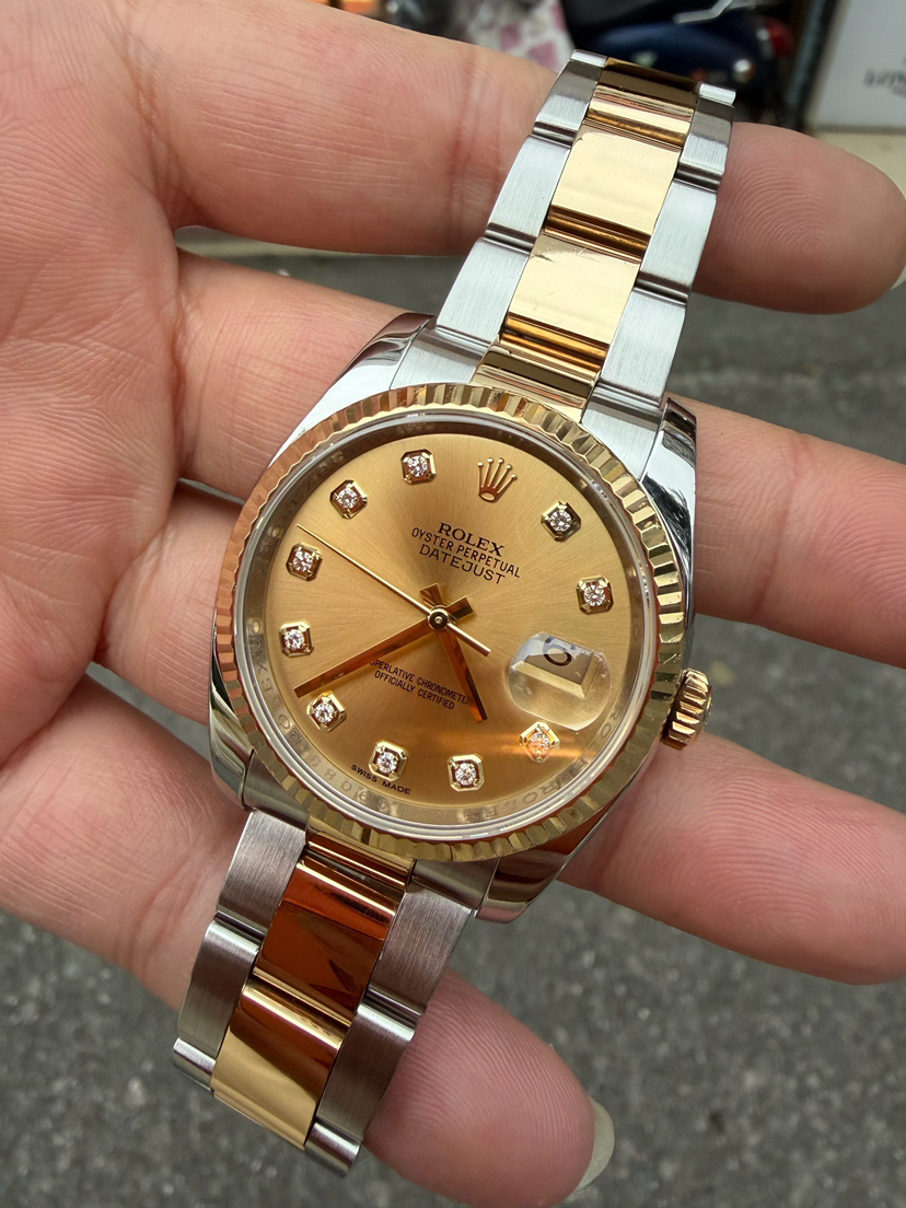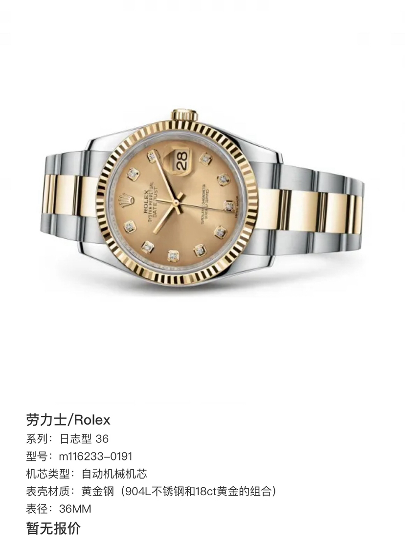 2015年全套完美10.5节,劳力士/Rolex 日志型 36mm 116233 自动机械机芯 黄金钢(904L不锈钢和18ct黄金的组合)