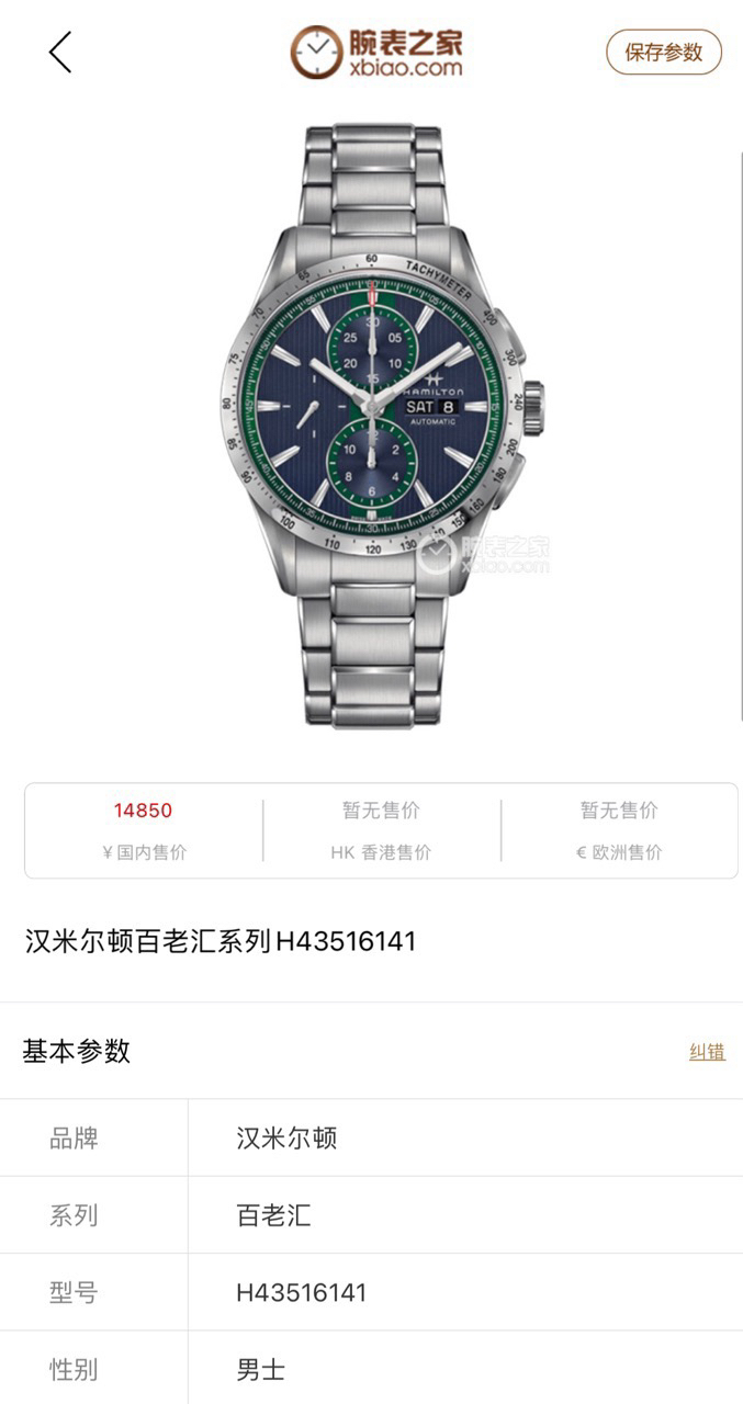 全新未使用空白保卡 汉米尔顿百老汇系列H43516141 男士自动机械 43毫米表径 精钢