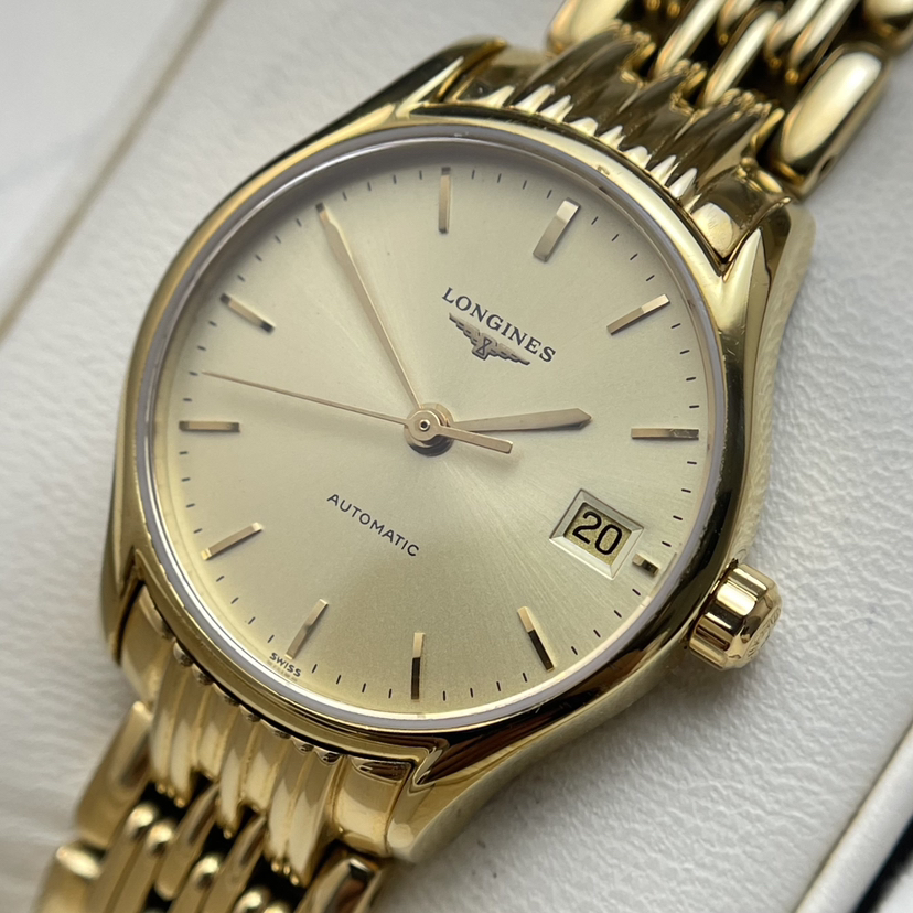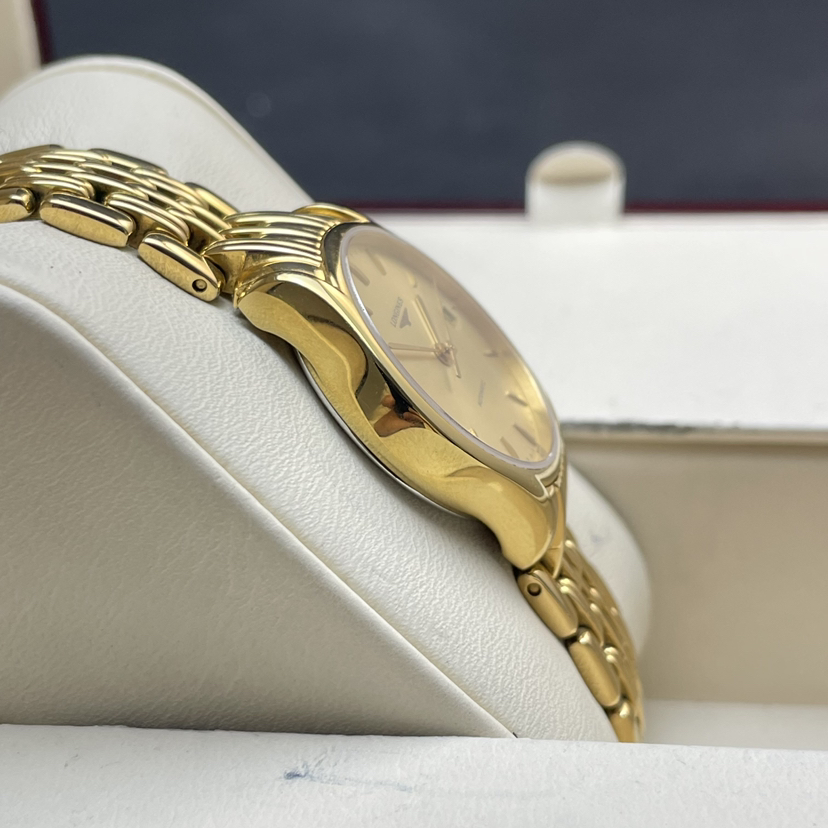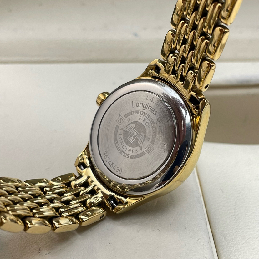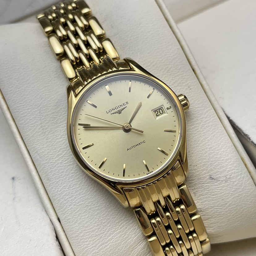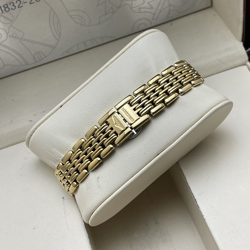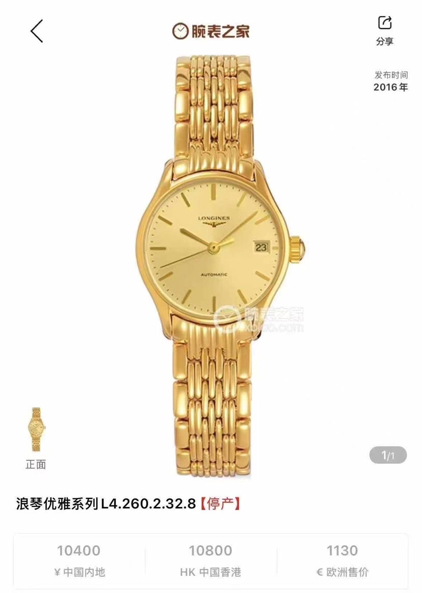 Longines 浪琴 律雅系列 L4.260.2.32.8,自动机械女表,黄盘条刻,表径25mm,腕周160mm,二手单表,公价 ¥10400
