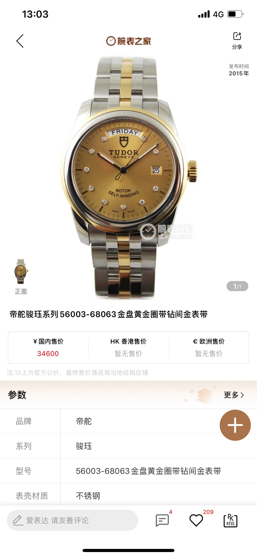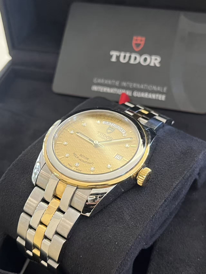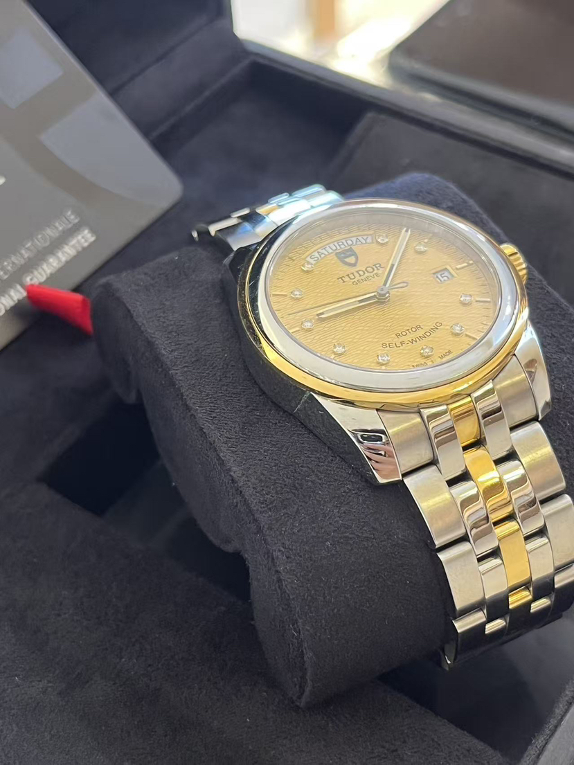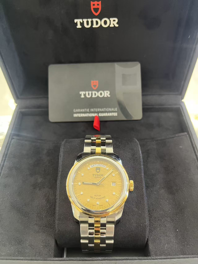 帝舵骏珏系列56003-68063金盘黄金圈带钻间金表带 男款自动机械 表径39 钻刻时标 日期显示 星期显示 公价34600