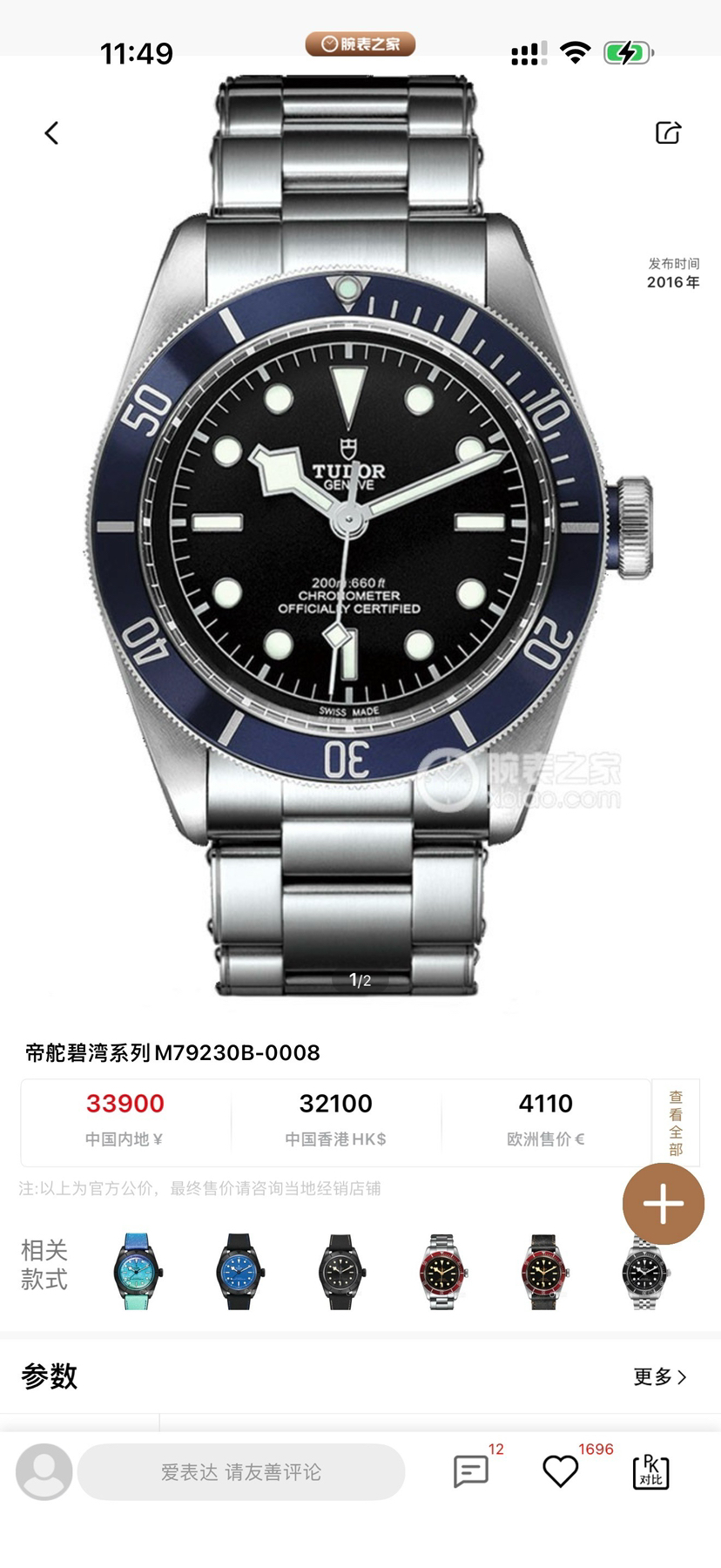帝舵/Tudor 碧湾 m79230b-0008 自动上链 钢表壳 41毫米 专柜价33900