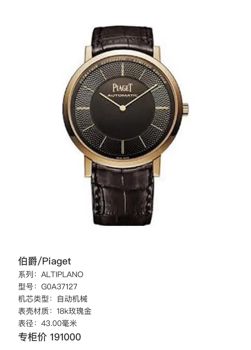 大全套2013年,伯爵/Piaget ALTIPLANO G0A37127 自动机械 18k玫瑰金 43.00毫米 专柜价191000