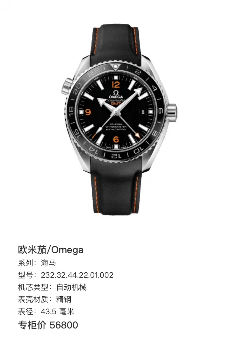 欧米茄/Omega 海马 232.32.44.22.01.002 自动机械 精钢 43.5 毫米 附件:单表 专柜价56800