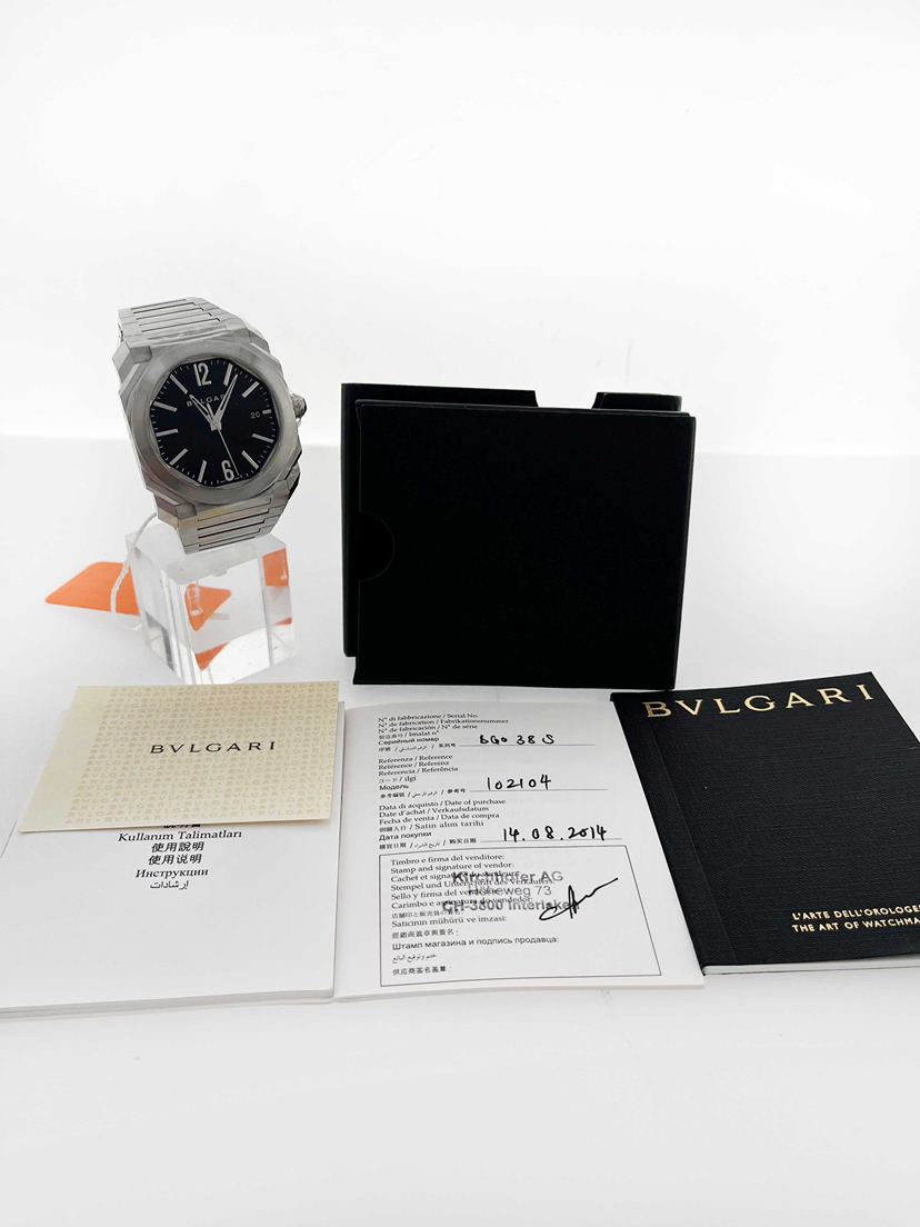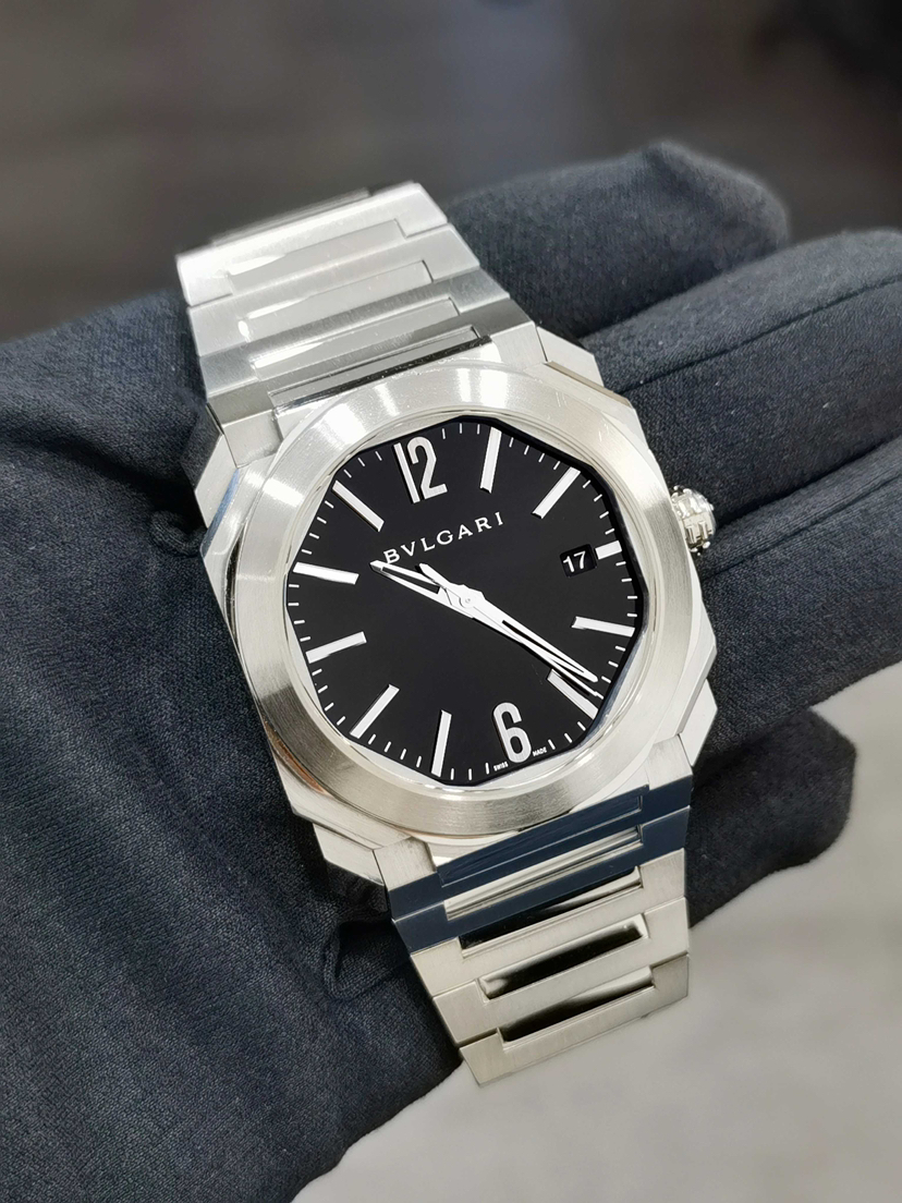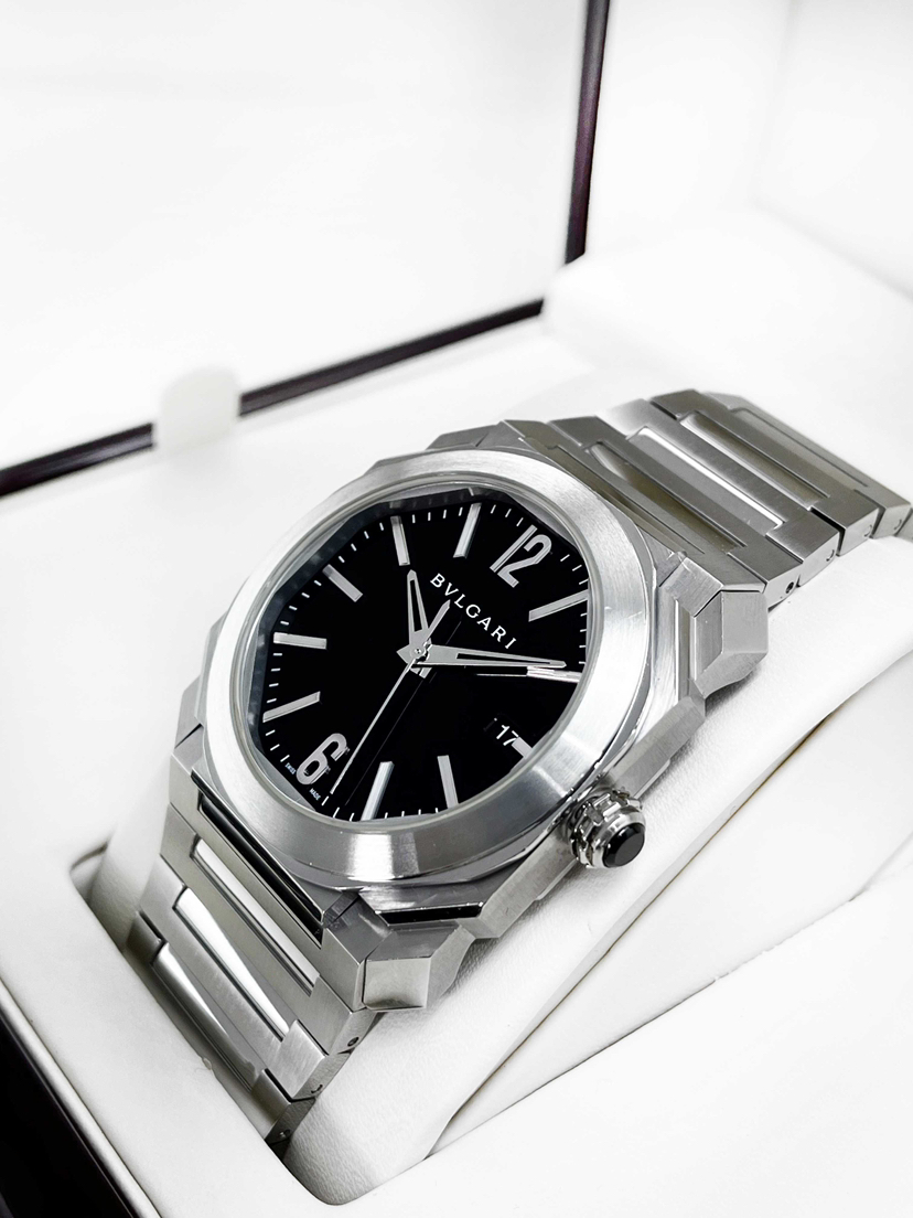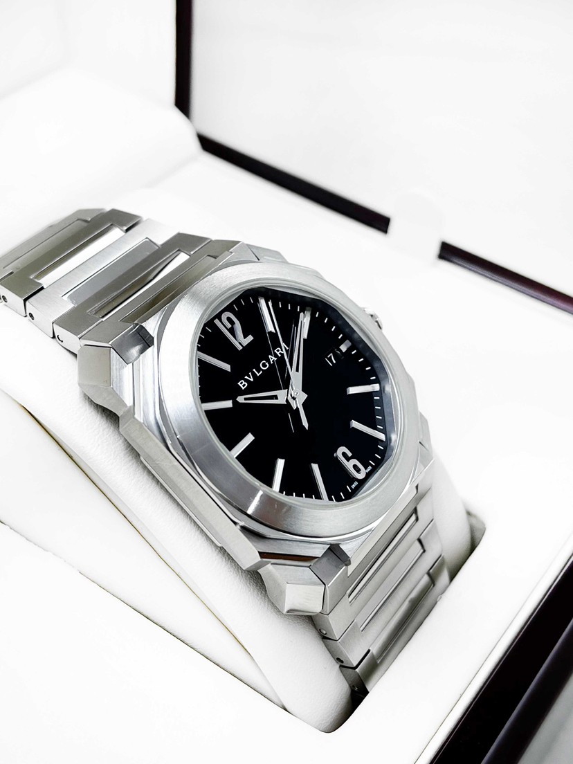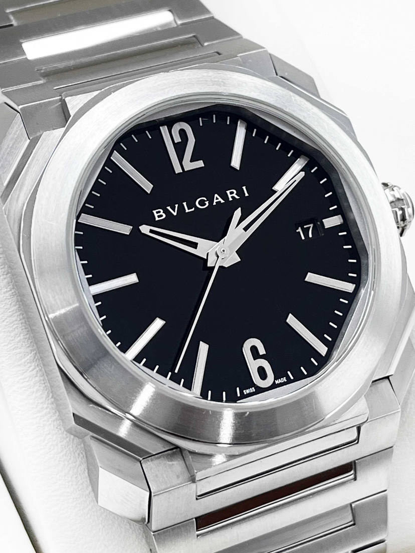 宝格丽OCTO系列102104 BGO38BSSD自动机械男款,新2014年全套无盒,38mm表径,精钢表壳,精钢表带,日期功能,腕周170mm,公价5.9万