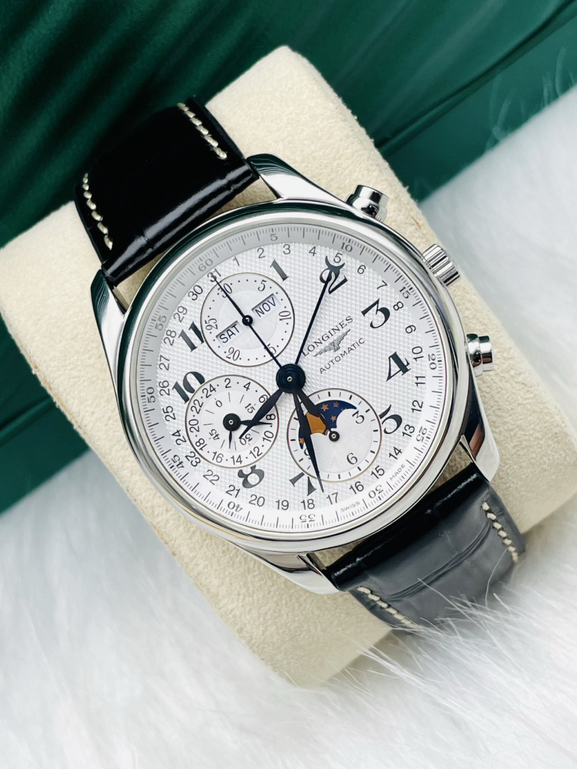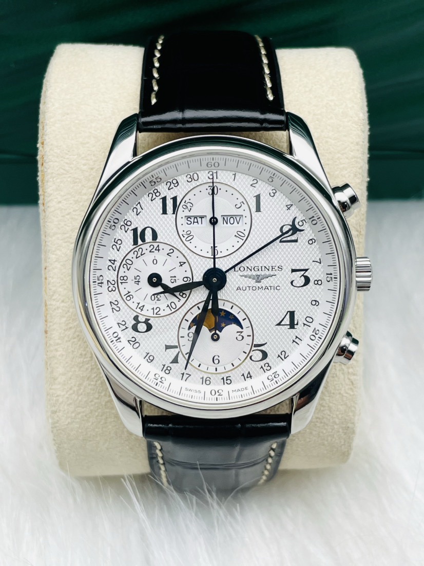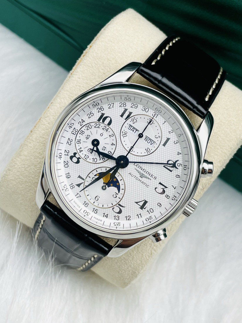 浪琴名匠系列八针月相精钢计时自动机械男表