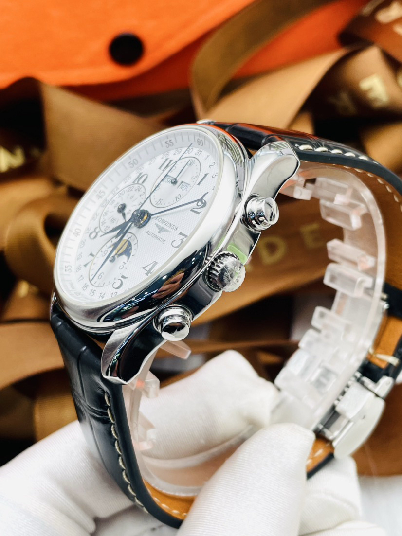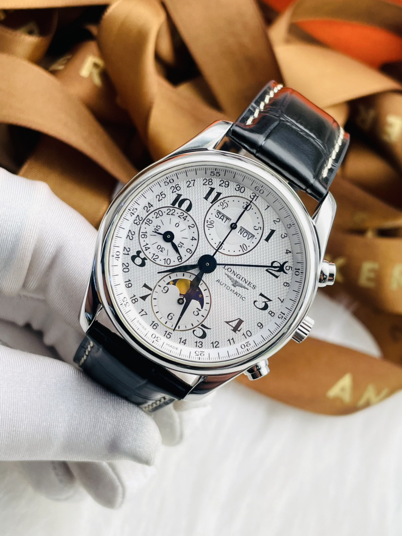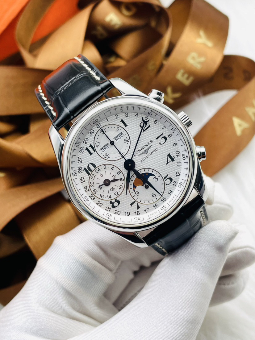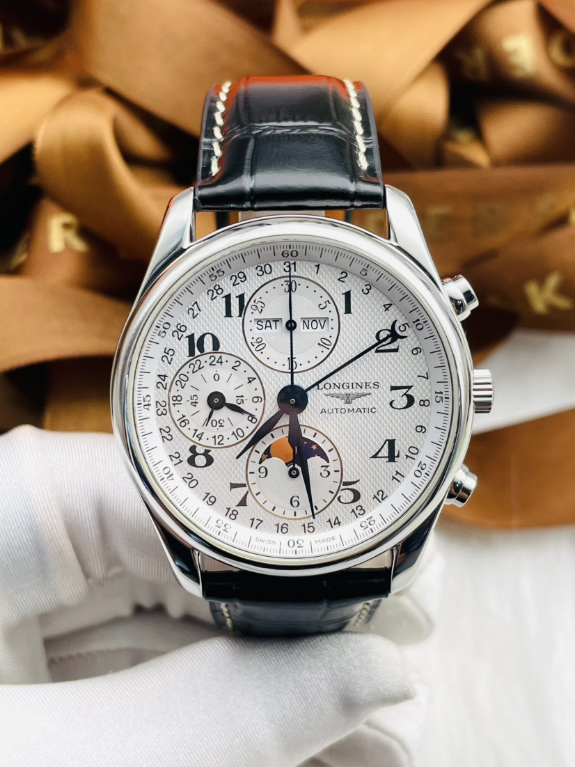 浪琴名匠系列八针月相精钢计时自动机械男表