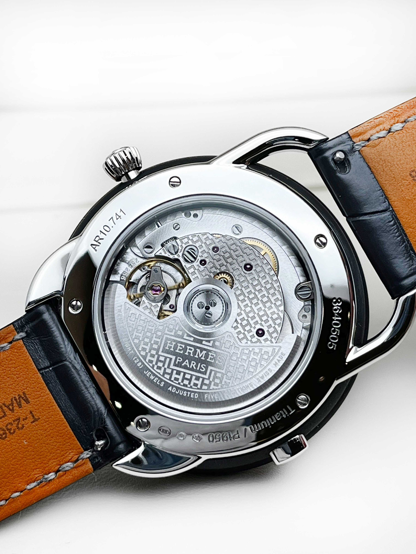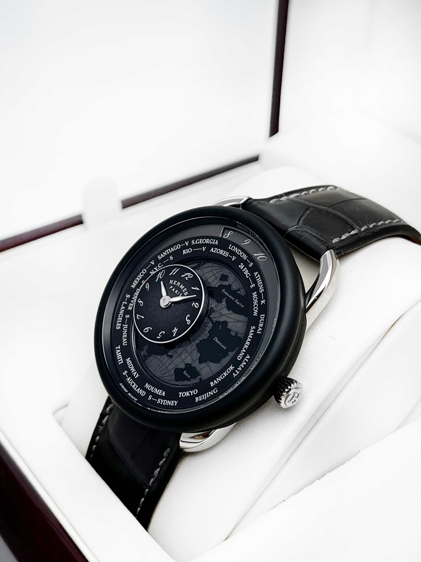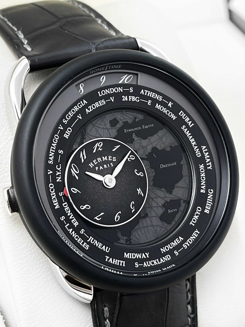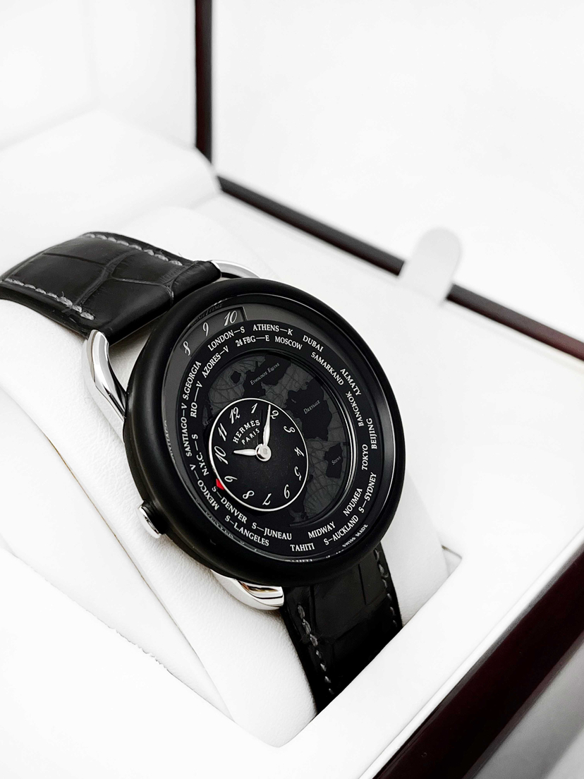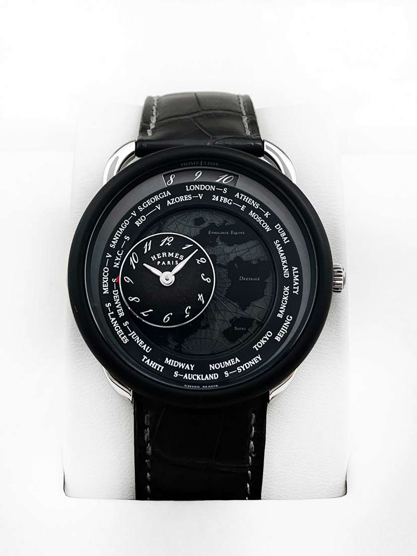 爱马仕Arceau系列W057198WW00自动机械男款,98新全套/空白保卡,41mm表径,铂金表壳,鳄鱼皮表带,日期、世界时功能,公价:31.51万