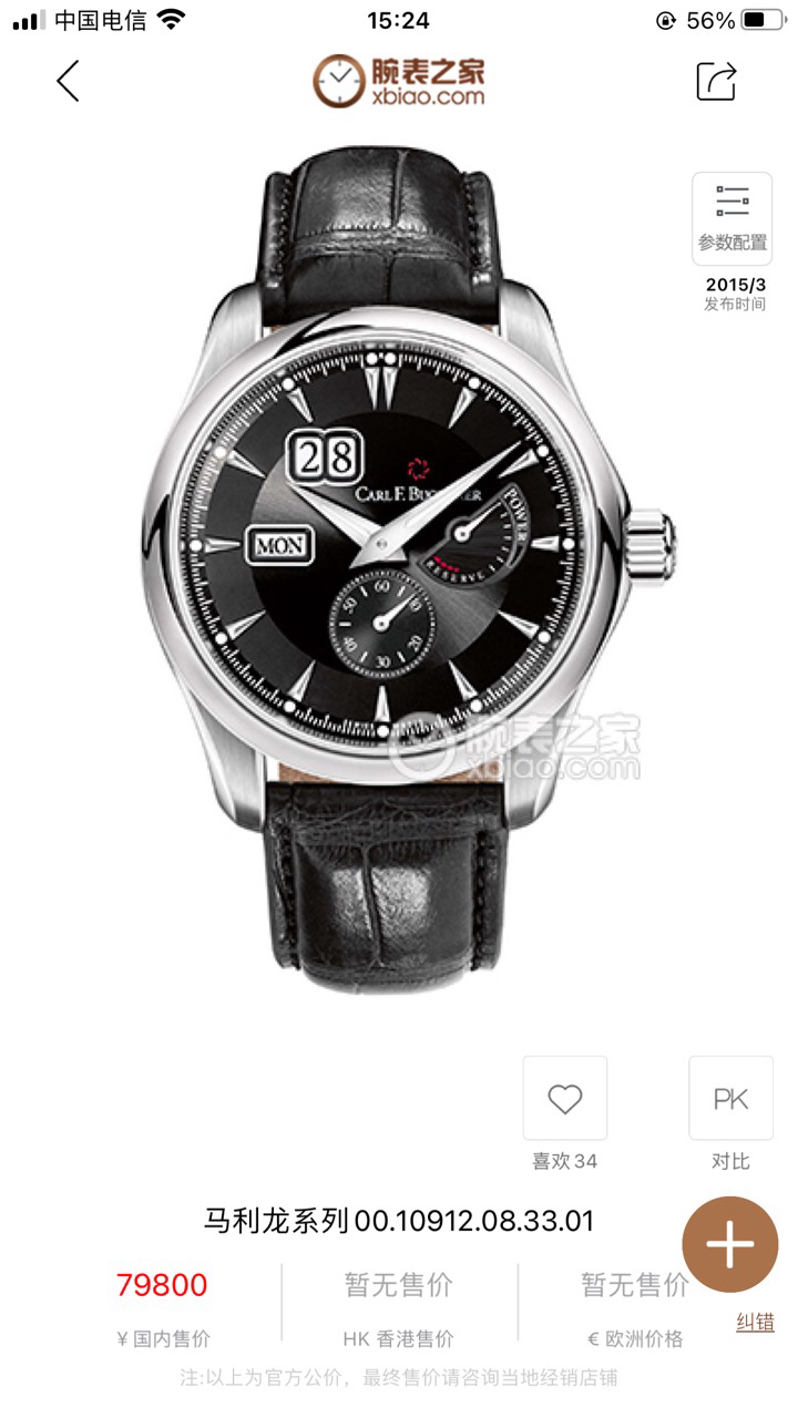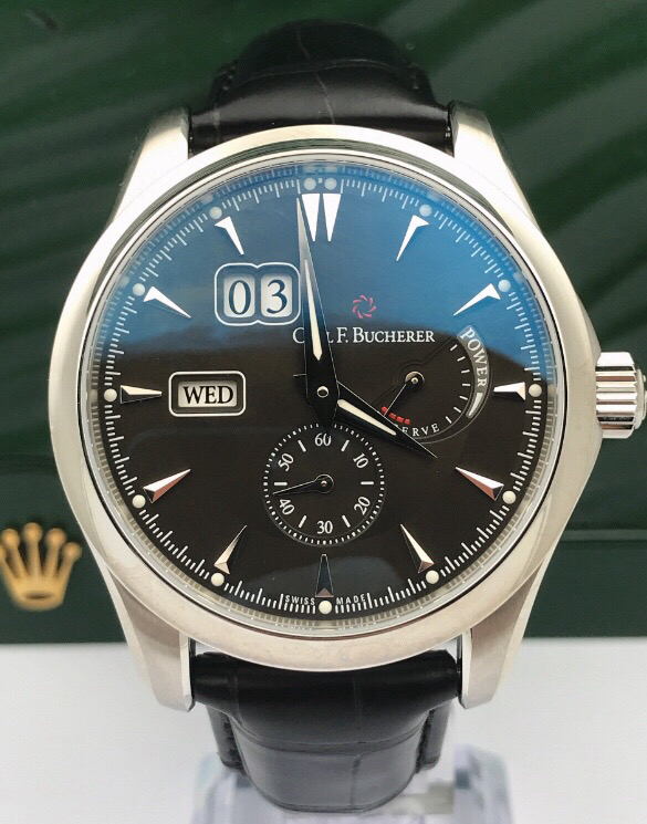 宝齐莱马利龙系列复杂功能自动机械男士腕表,经典黑盘搭载日期显示+星期显示+动力储存显示+独立秒针显示,功能复杂而不凌乱,00.10912.08.33.01,表径42.5mm,专柜价79800,未使用全套