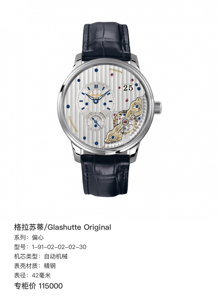 格拉苏蒂/Glashutte Original 偏心系列1-91-02-02-02-30 自动机械 精钢 42毫米 专柜价115000。23年全套,现货好价!