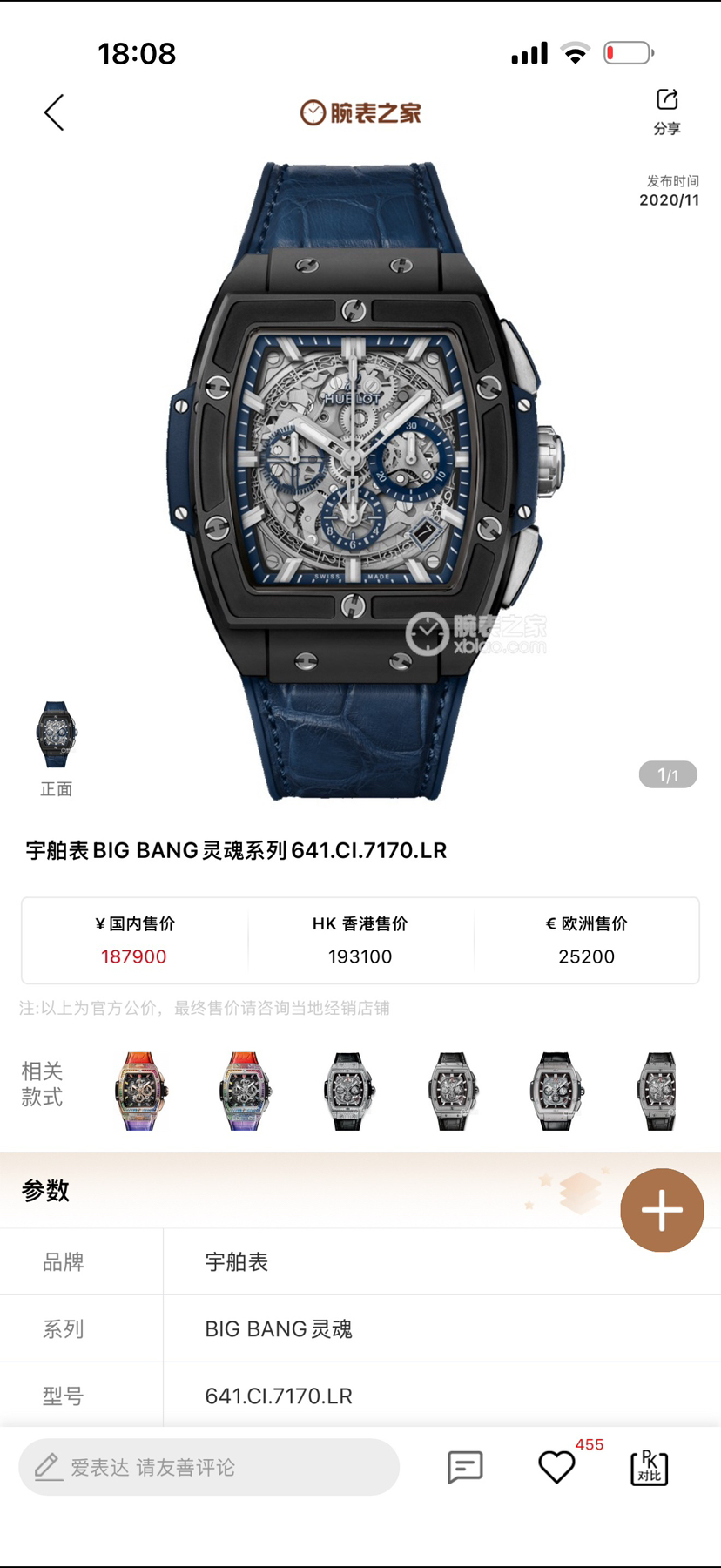 宇舶 灵魂BIG BANG 601.CI.7170.LR 自动机械 黑色陶瓷 带有6个H型钛螺钉 45mm表径 专柜价195600 单表好价。