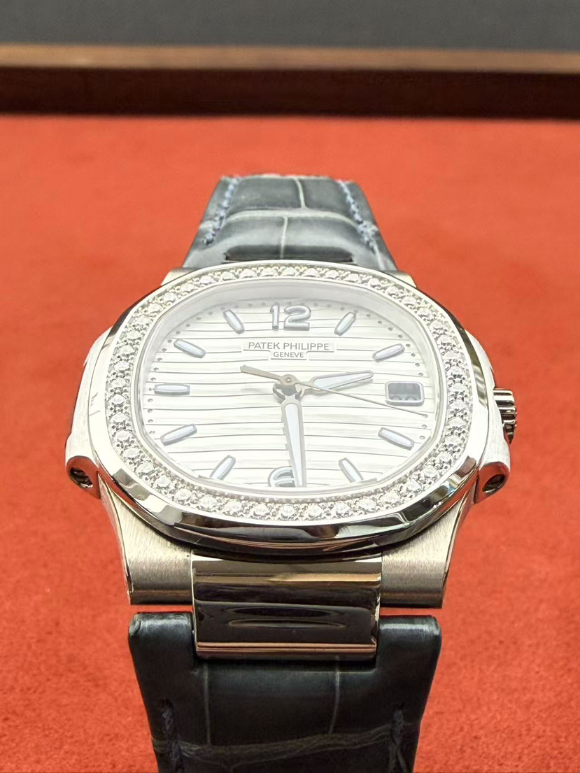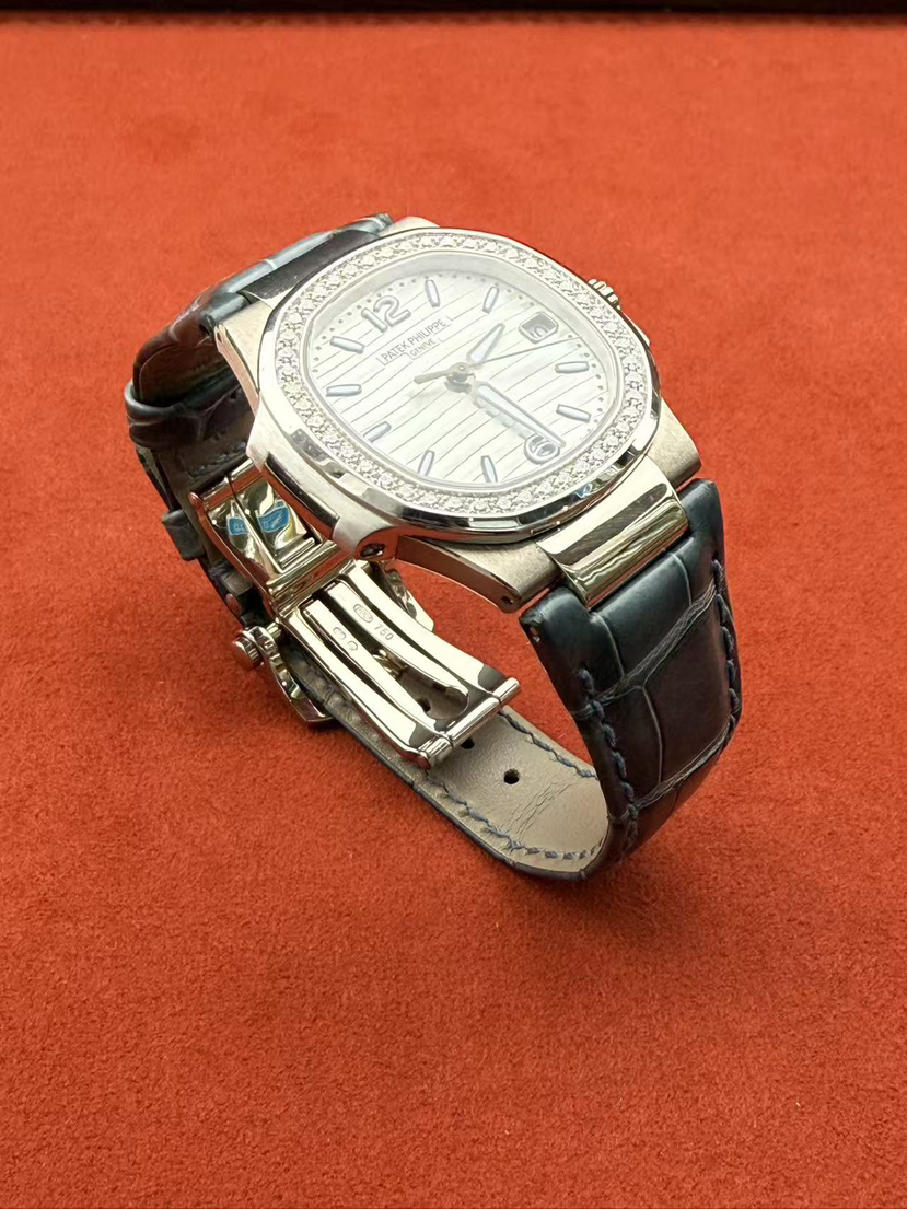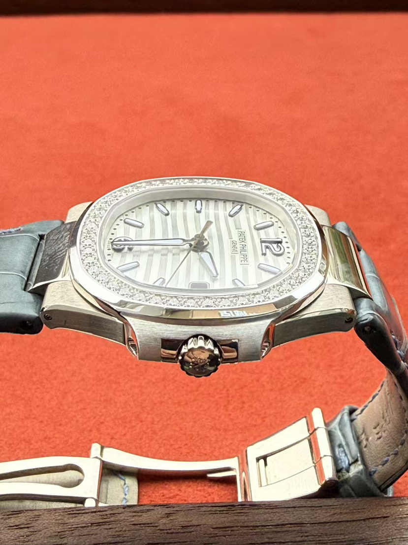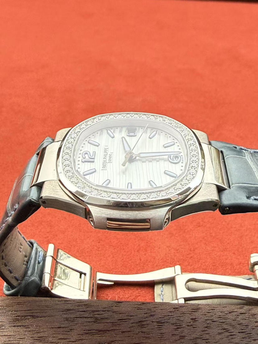 百达翡丽鹦鹉螺系列7010G-011女士石英腕表,18K白金材质 女神同款 32mm表径,新款水波纹盘,新款刻度,原始极品成色,公价238300