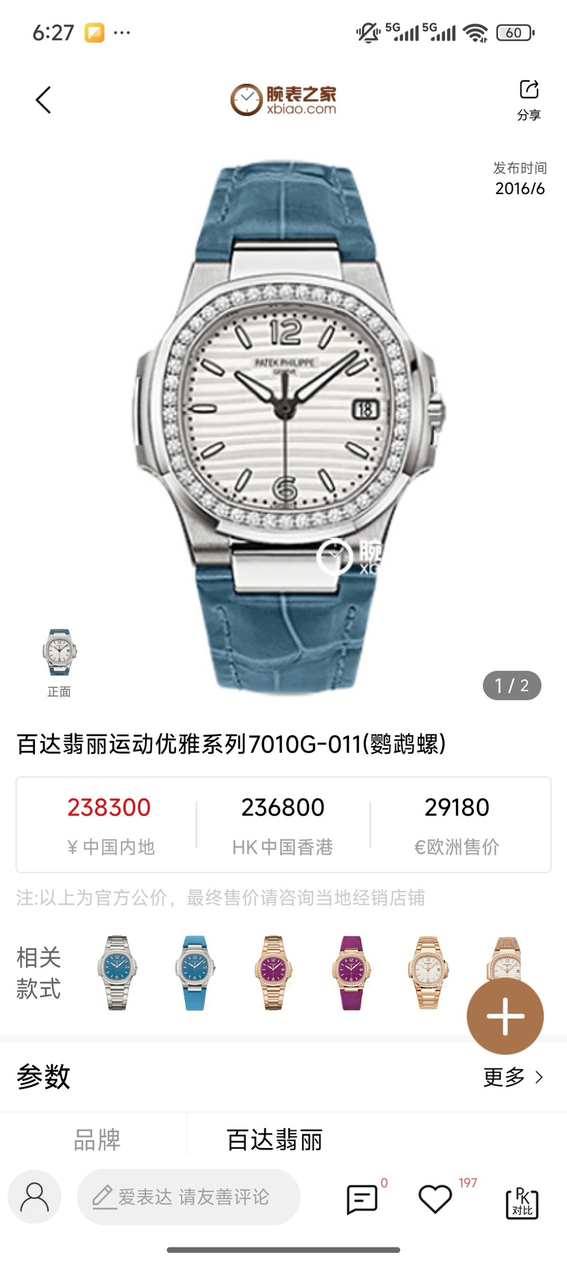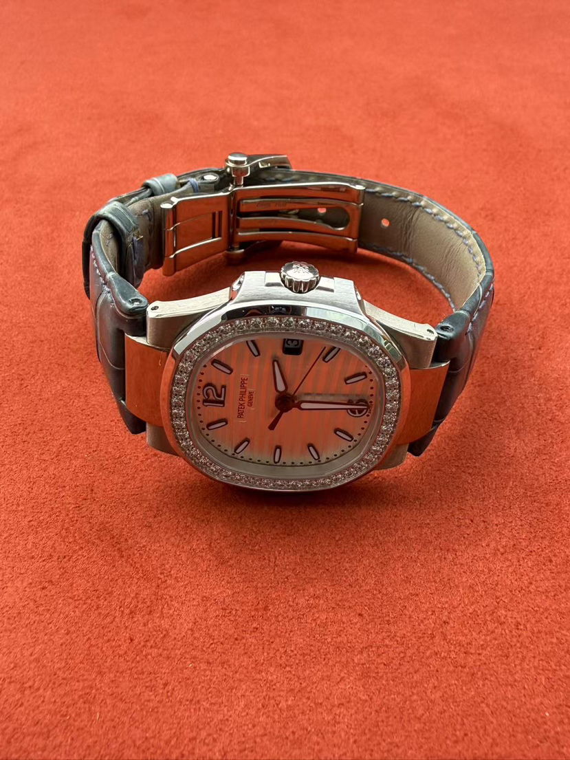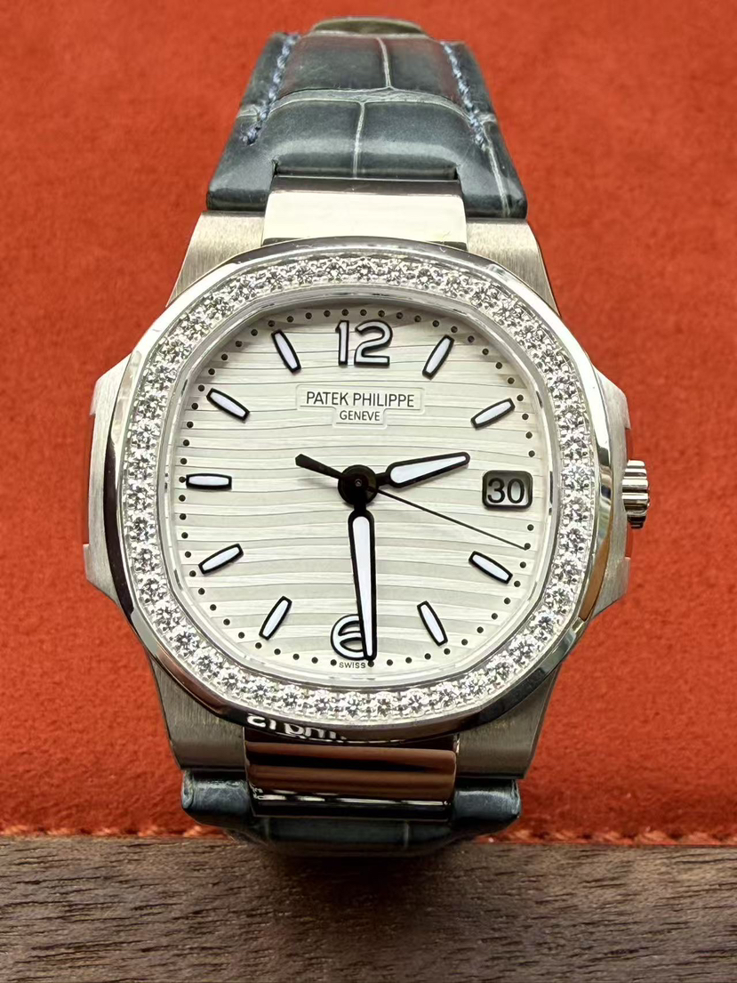 百达翡丽鹦鹉螺系列7010G-011女士石英腕表,18K白金材质 女神同款 32mm表径,新款水波纹盘,新款刻度,原始极品成色,公价238300