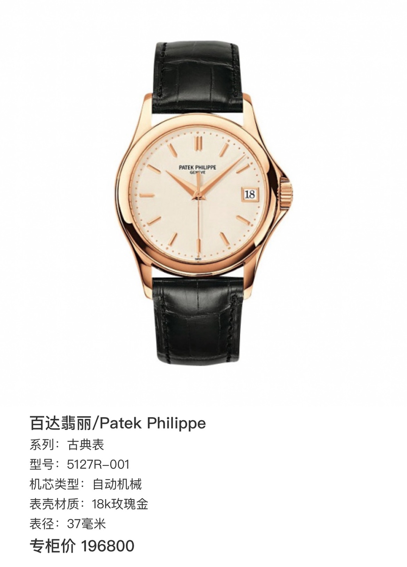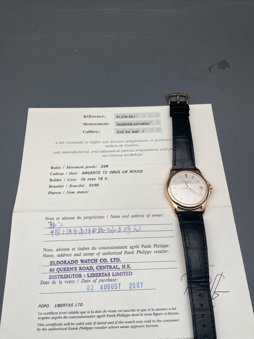 新收 百达翡丽/古典表 5127R-001 自动机械 18k玫瑰金 37毫米 专柜价196800 2007年保卡好价