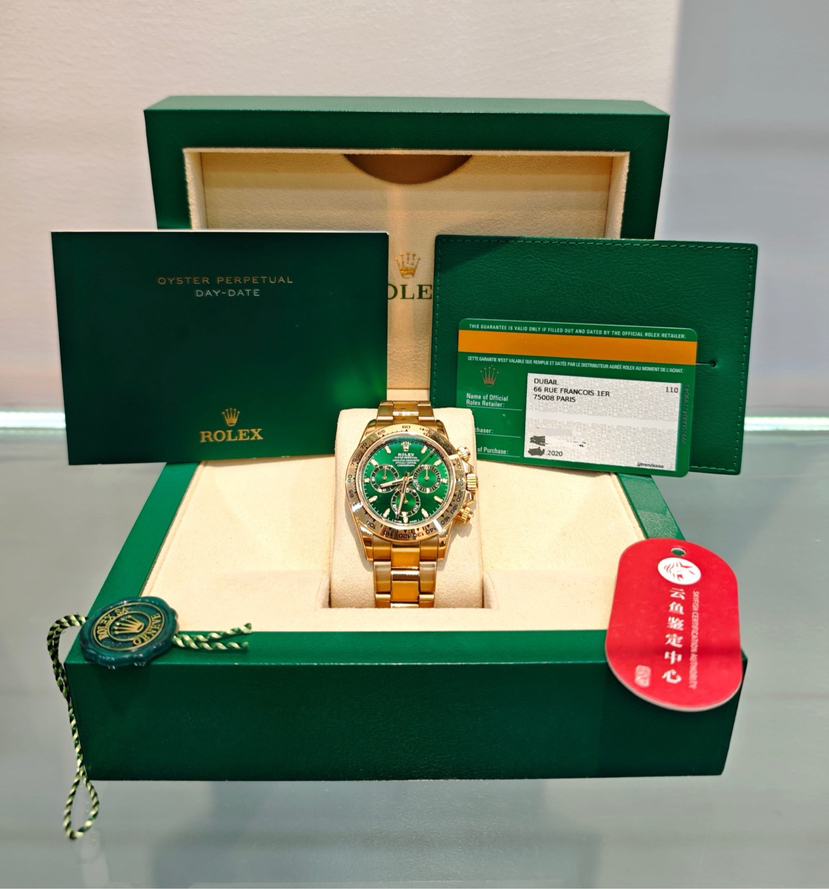 2020年全套(附云鱼证书已查码)劳力士宇宙计型迪通拿系列m116508-0013(绿金迪)