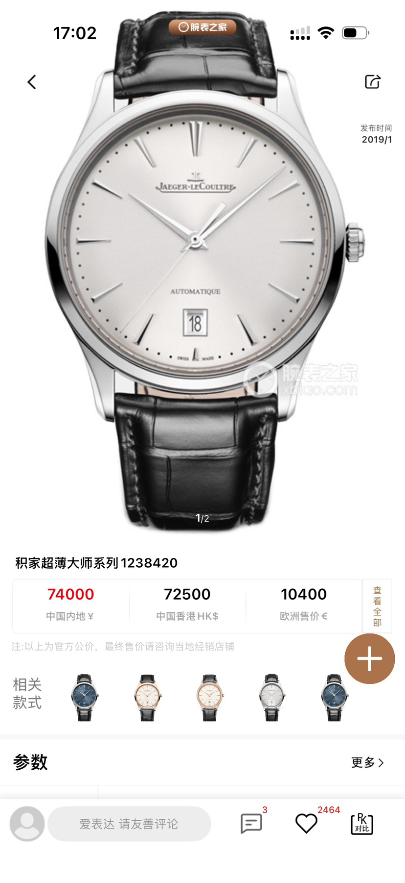 全新未使用23年积超薄大师系列腕表 Q1238420 自动上链 精钢 39毫米 专柜价74000. 23年全新全套全膜 延保至31年 只卖二手价