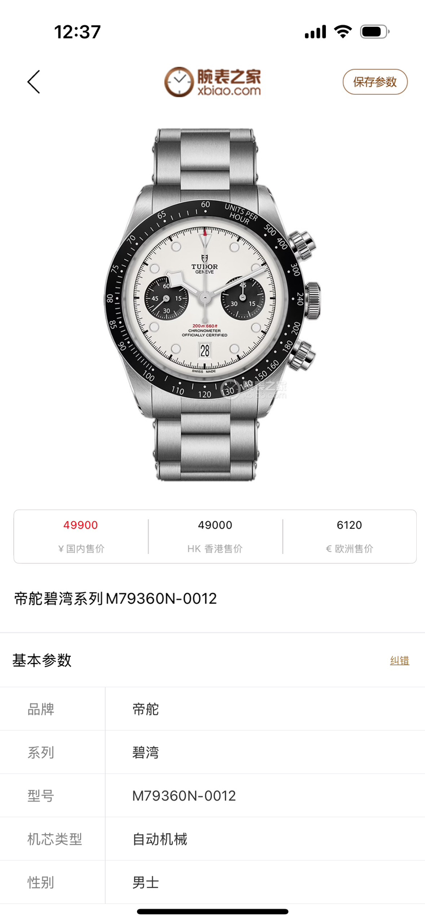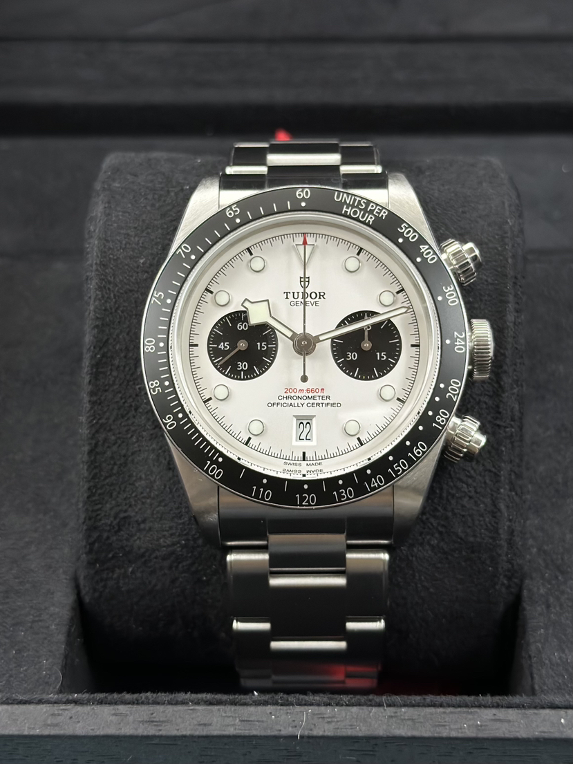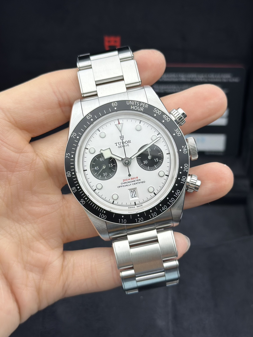 帝舵 碧湾系列 M79360N-0012 男士自动机械腕表,41mm表径,精钢材质,众多明星同款,白盘一表难求,熊猫迪既视感。98新品相后膜还在 2022年全套票据齐全 公价49900。现好价带走!。