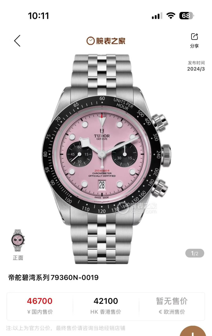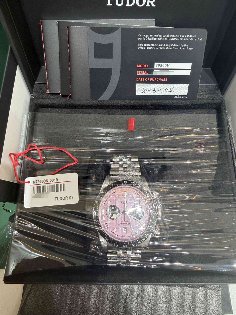 帝舵 碧湾系列 79360N-0019,自动机械,316L不锈钢,41毫米,粉色表盘。专柜价46700。国行全新26年3月30号卡,现货好价!