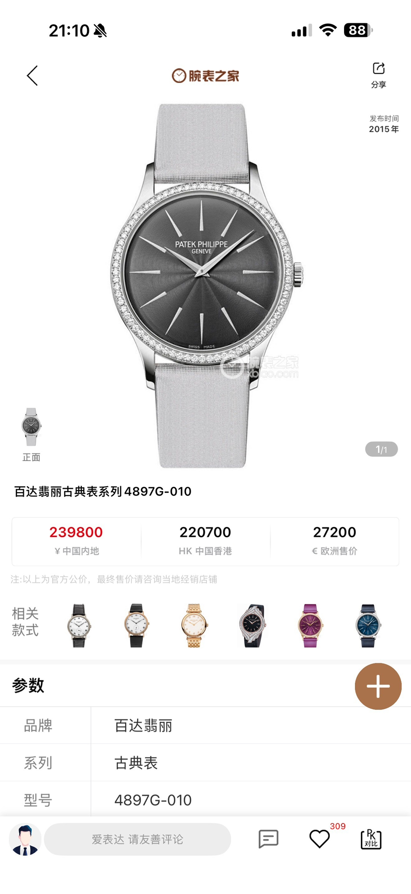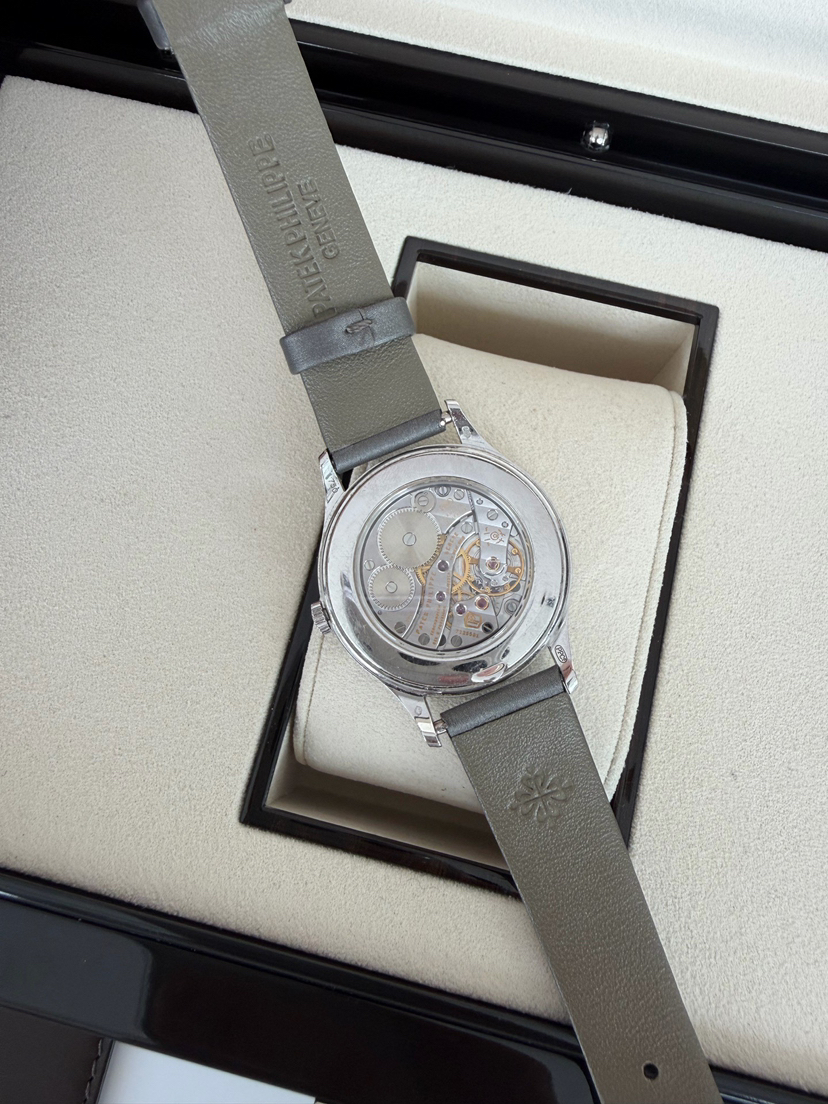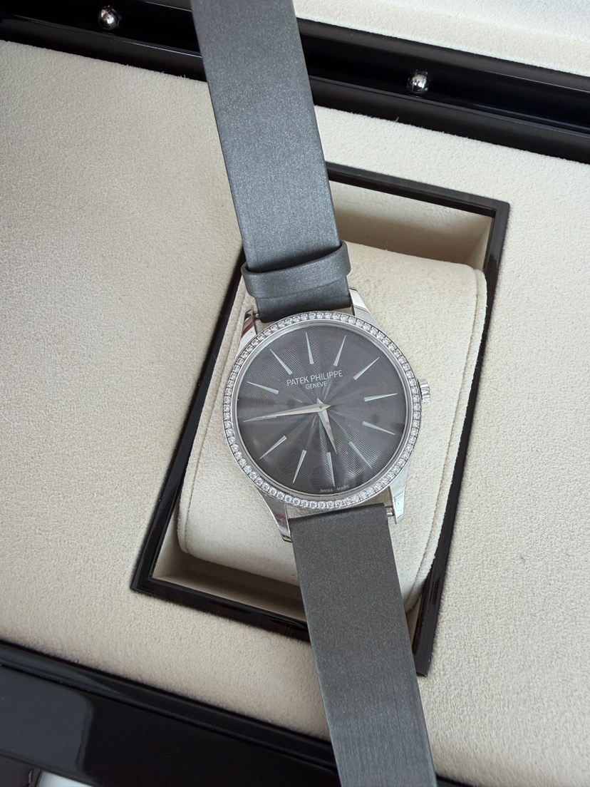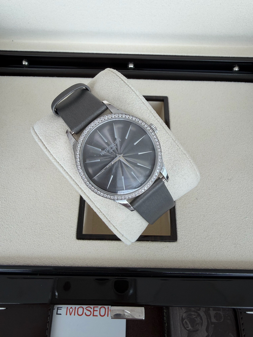 新到!百达翡丽古典表系列女士手动机械腕表4897G-010灰盘,表径33mm,18K白金表圈原镶钻石,20年极品大全套,专柜价239800,现货好价